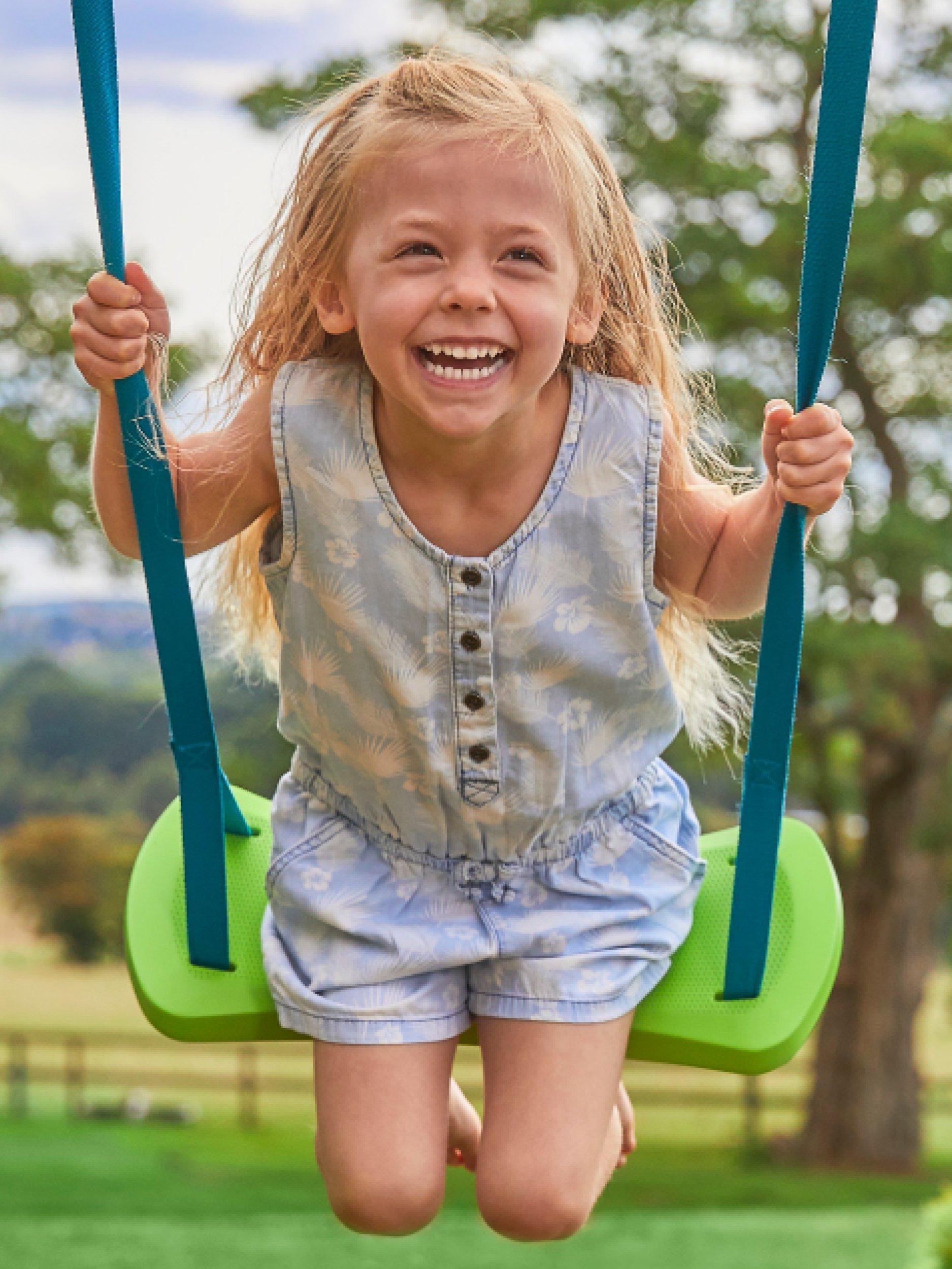 The TP Forest Double Swing is a traditional wooden swing set for your garden. Kids can enjoy the fun of a playground without sacrificing the entire garden. Two height-adjustable swing seats cater for kids from ages 3 to 10 years, with a maximum user weight of 45kg per seat.