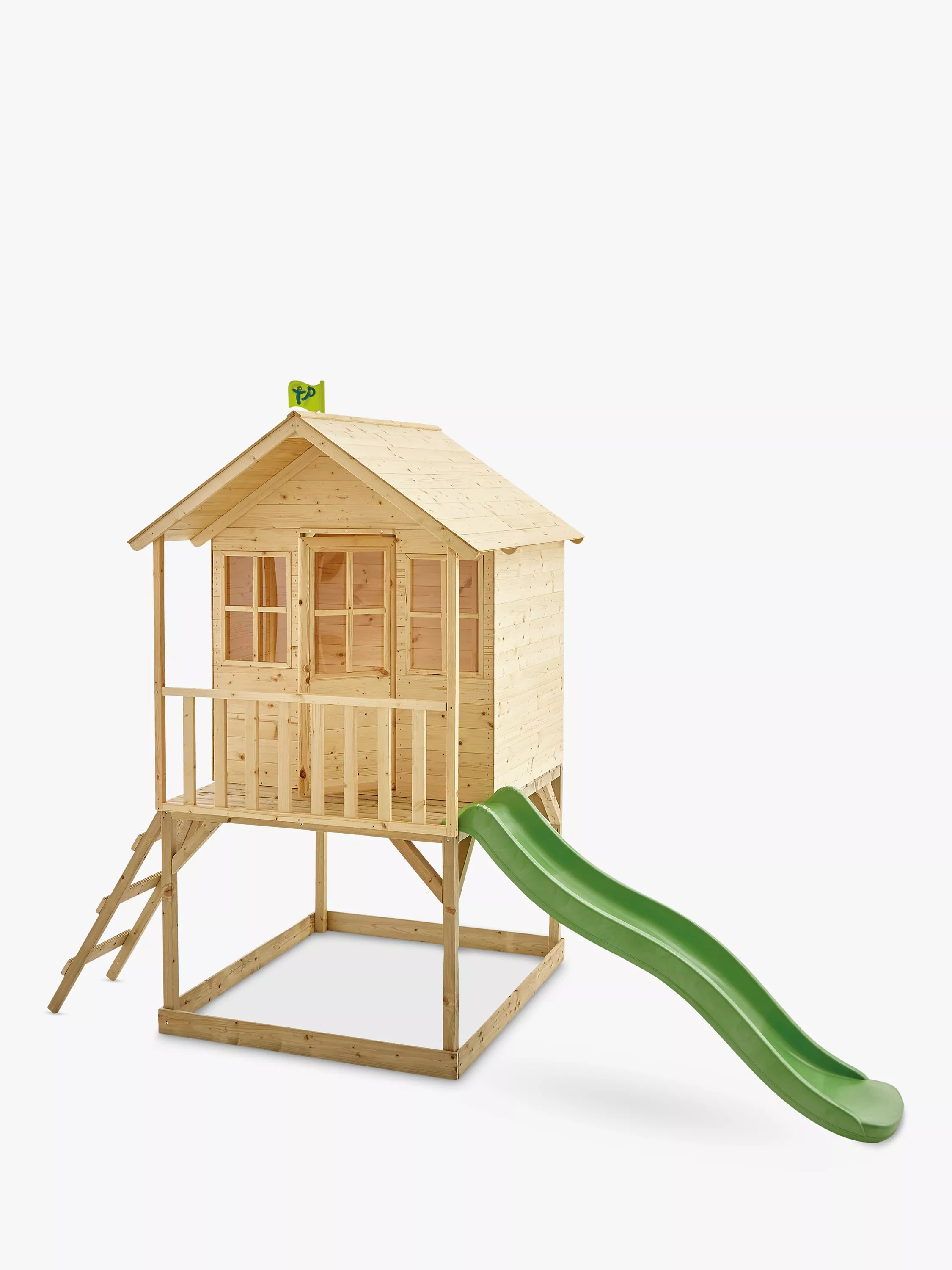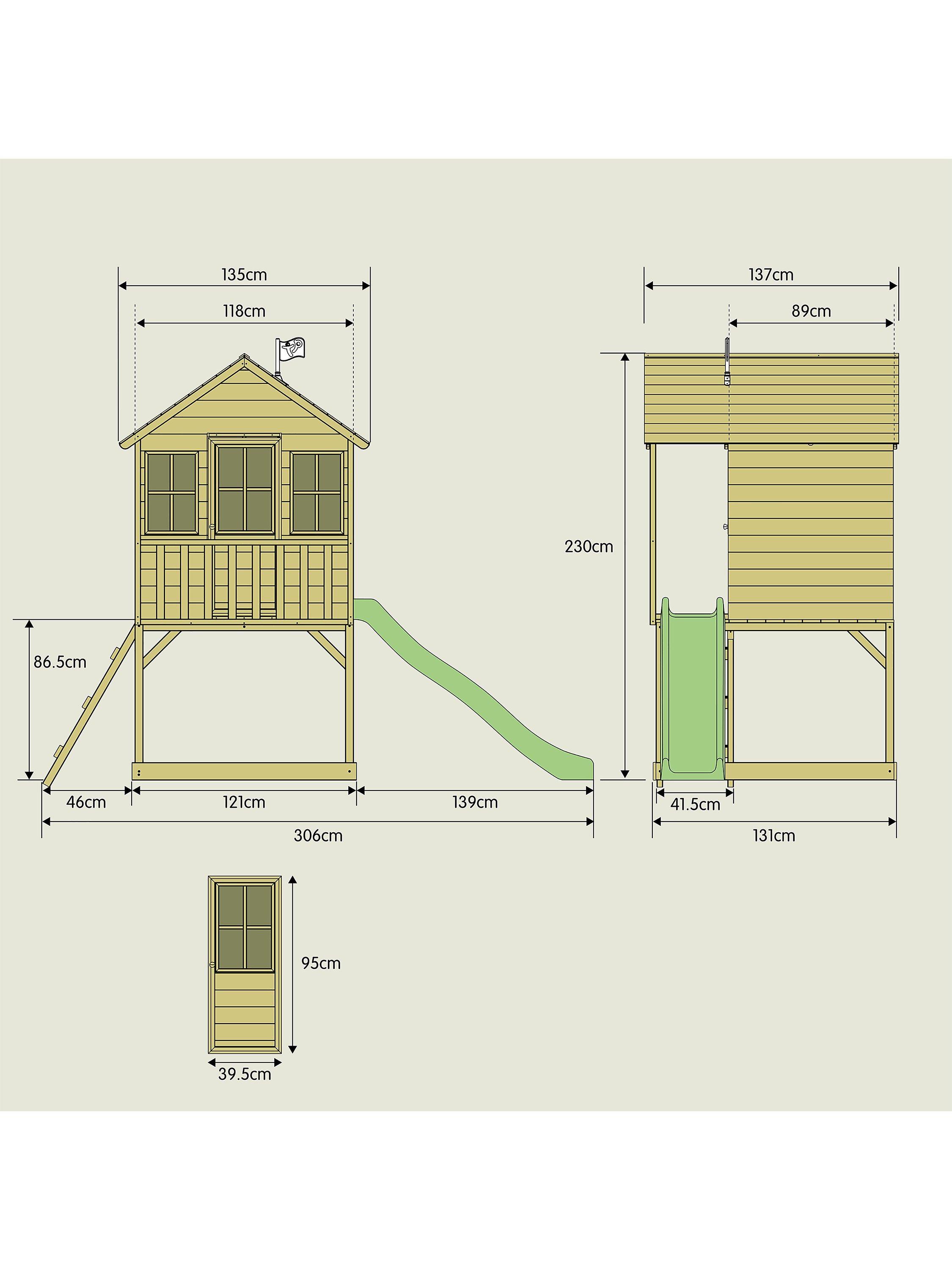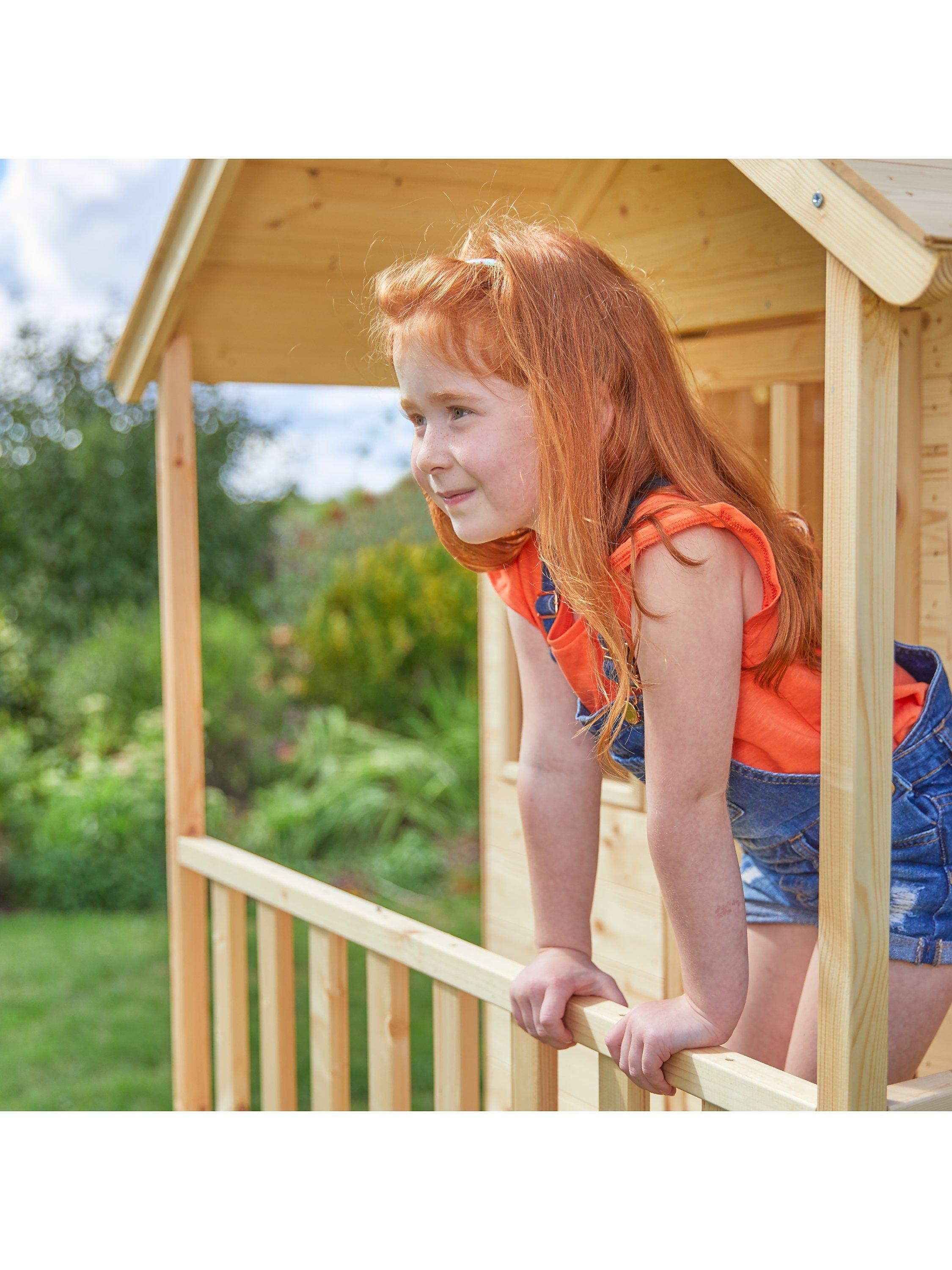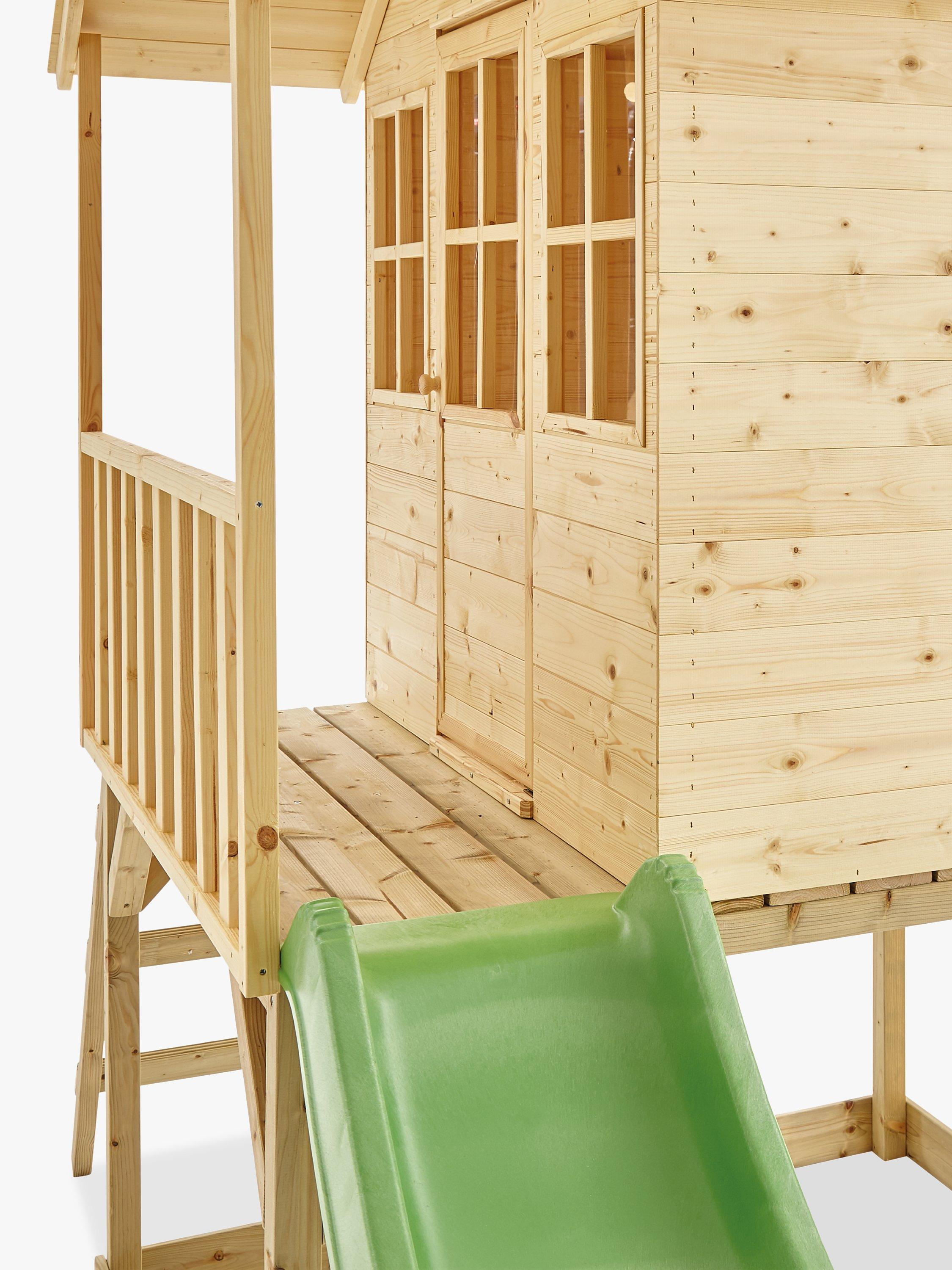 This wooden tower has a cosy playroom, a ladder and a slide for a super-speedy exit! There's even a shaded sandpit underneath where they can dig for lost treasure!