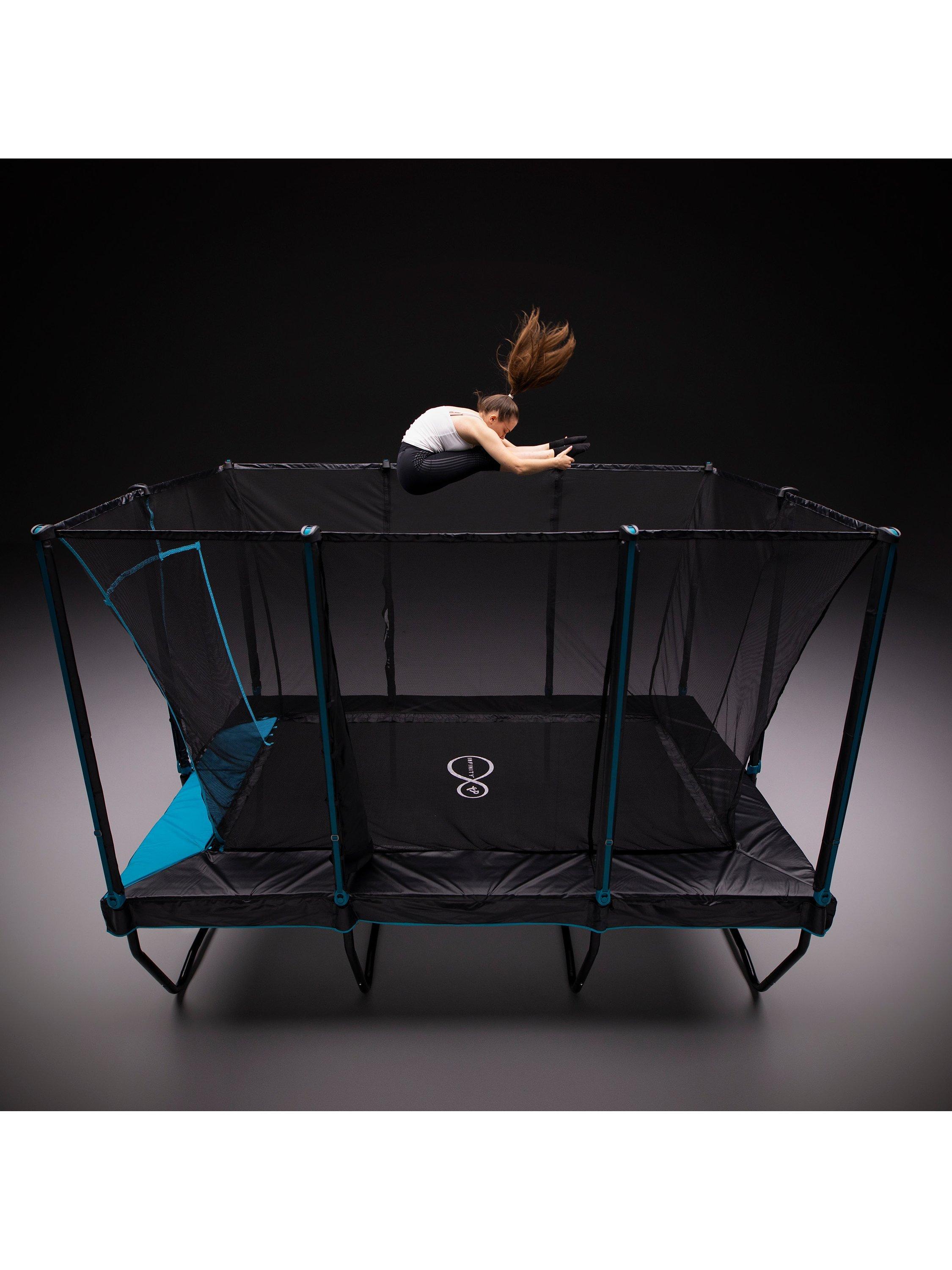 The TP Infinity Rectangular Trampoline is packed with great patented protected design features. The rectangle shape and premium springs deliver an exceptional vertical bounce across the entire jump surface.