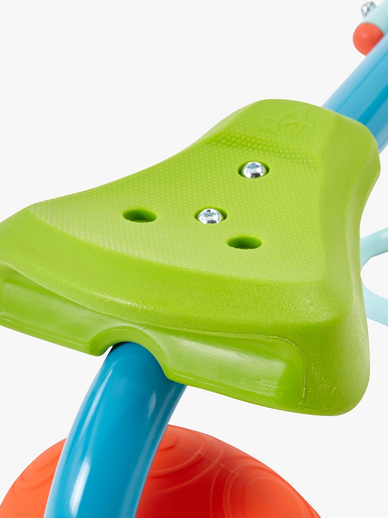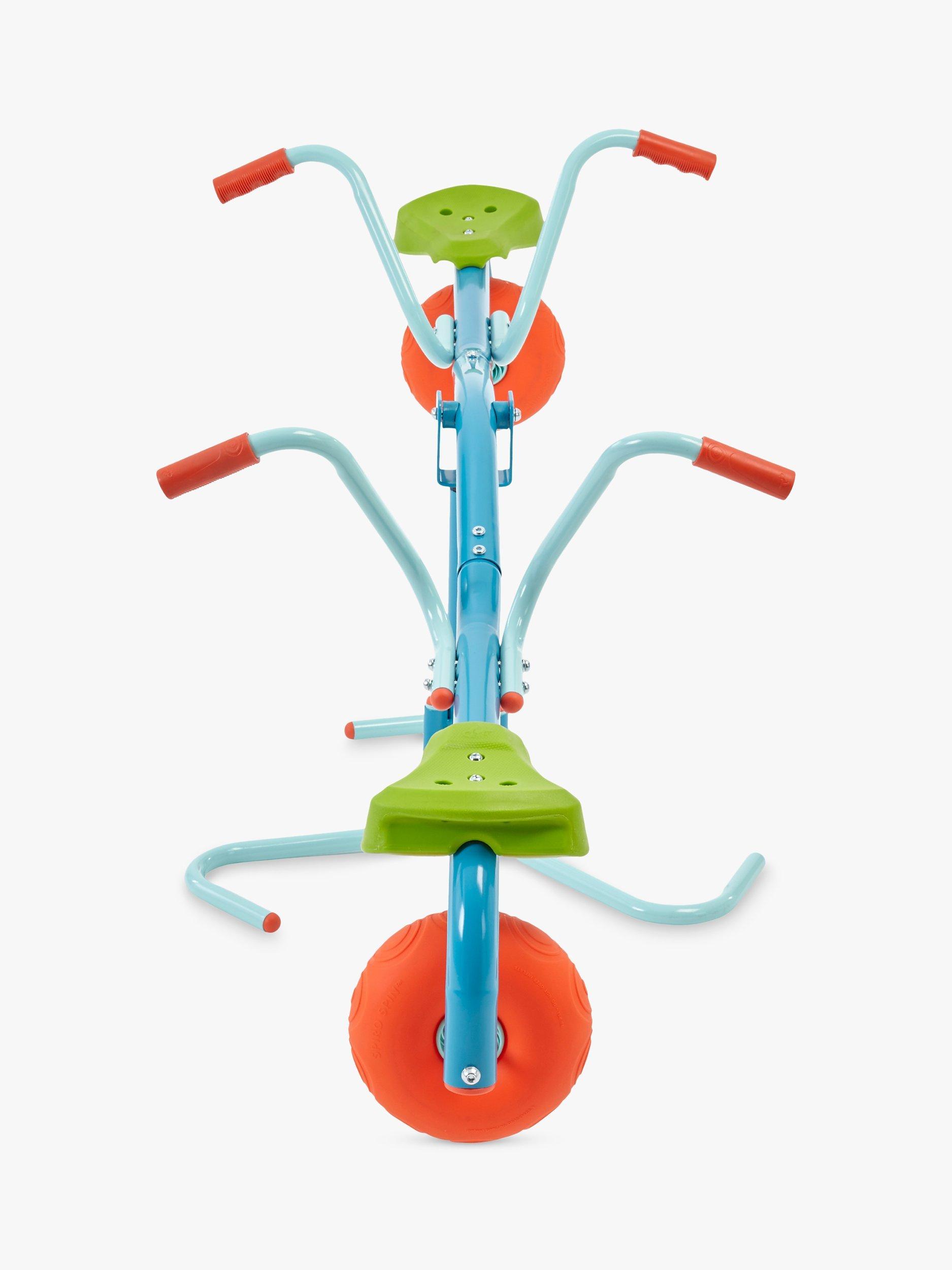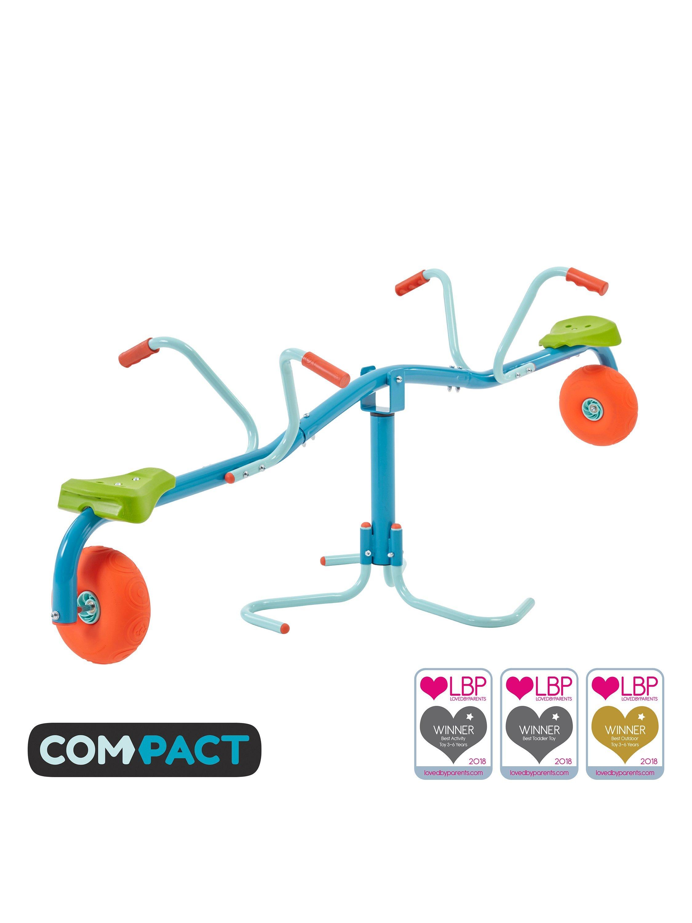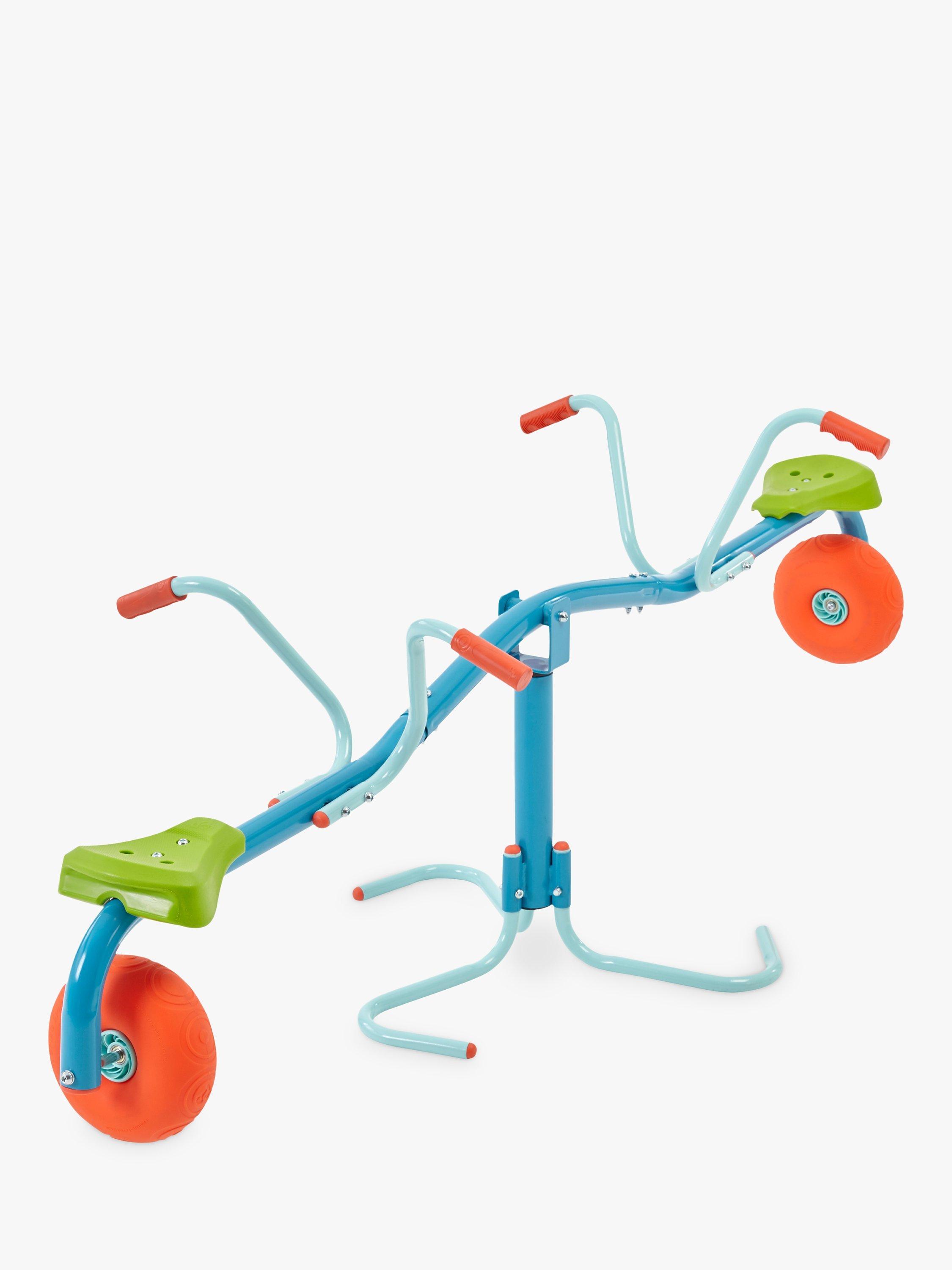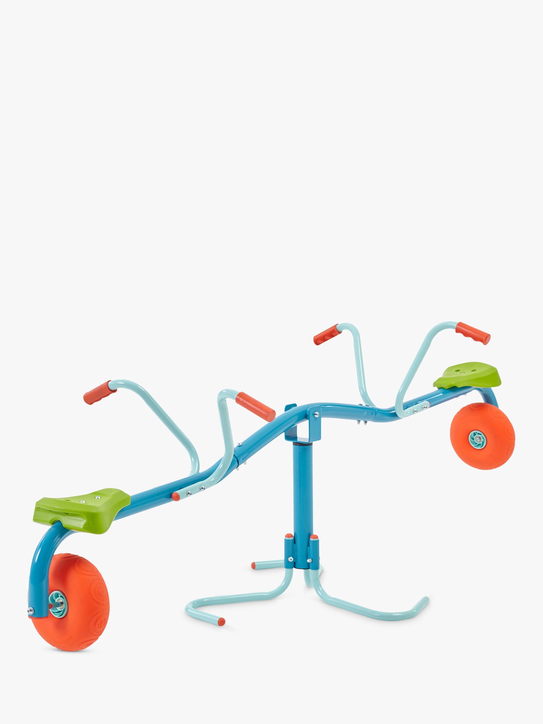 This update on the classic seesaw features entertaining features such as a 360 spinning core, pneumatic impact wheels that cushion the bounce and soft-feel angled hand-grips.