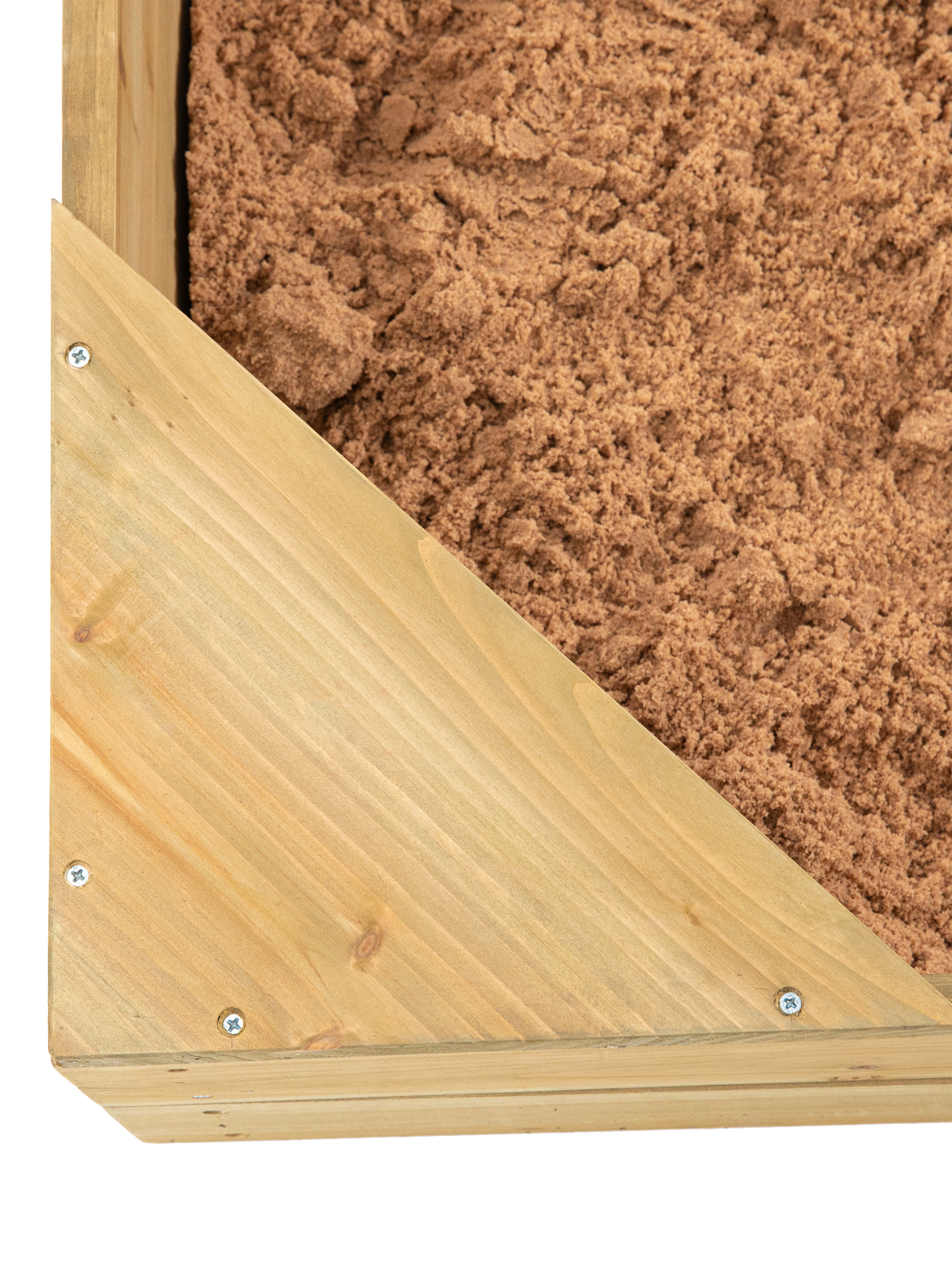There are even triangular wooden seats in each corner, providing a comfortable spot for little ones to sit while they play.