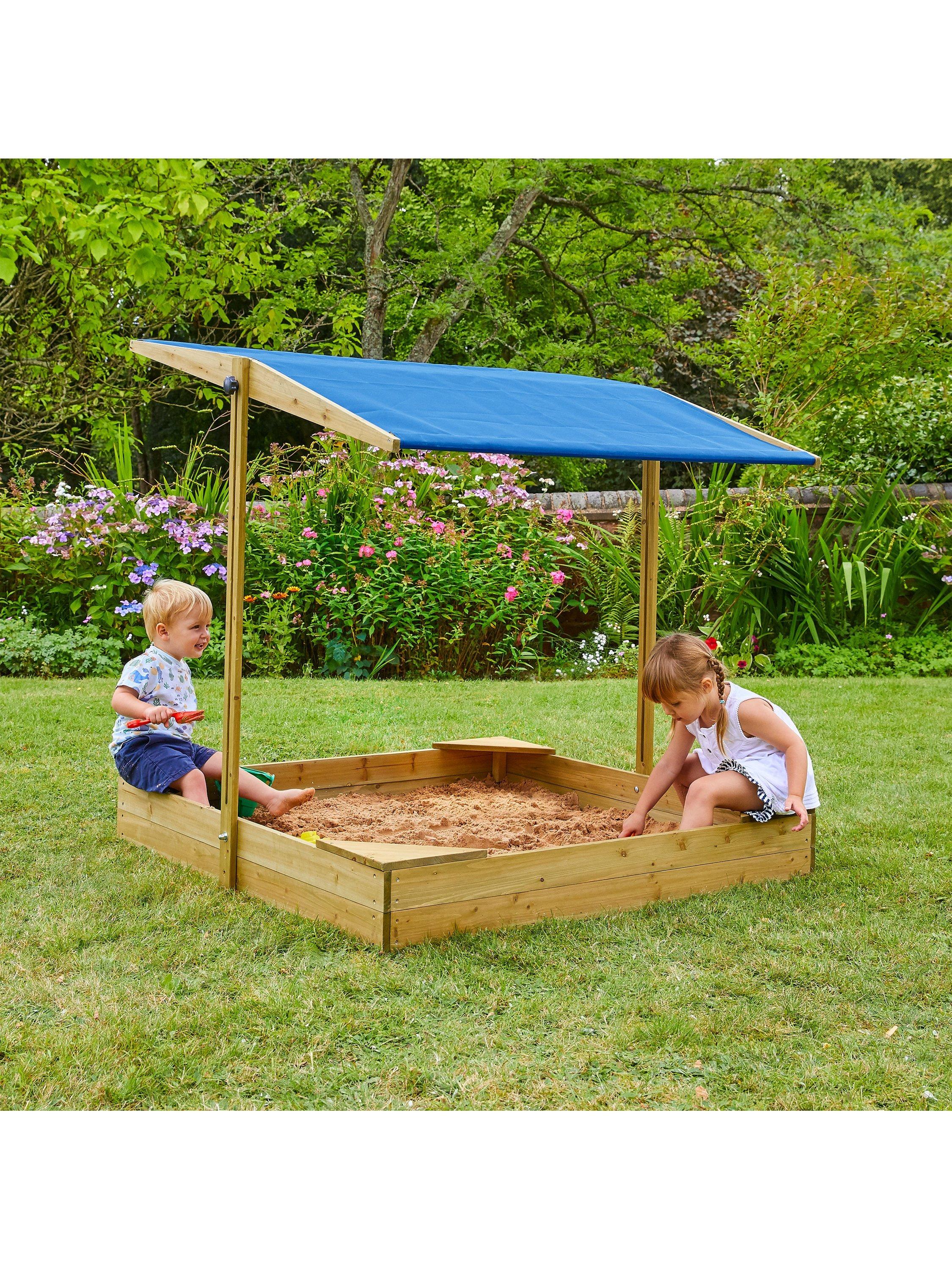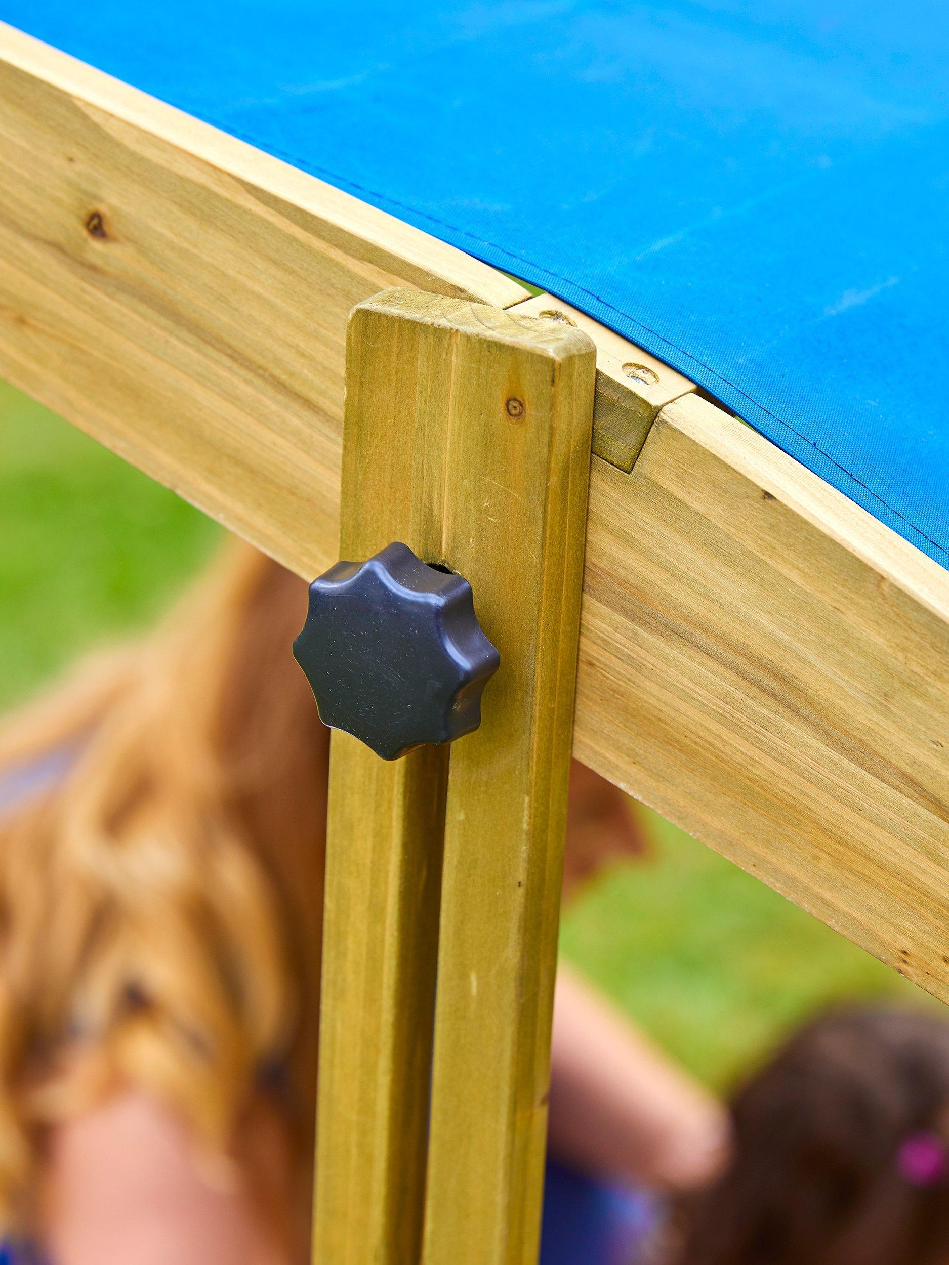 This sandpit is not just a play area, it's a haven for creativity and laughter. Simply fill up the water-porous liner with sand to get playtime underway. For those particularly sunny days, the canopy is fully adjustable, so you can rotate and change the height to keep little ones protected from the sun and to keep the adventure going.