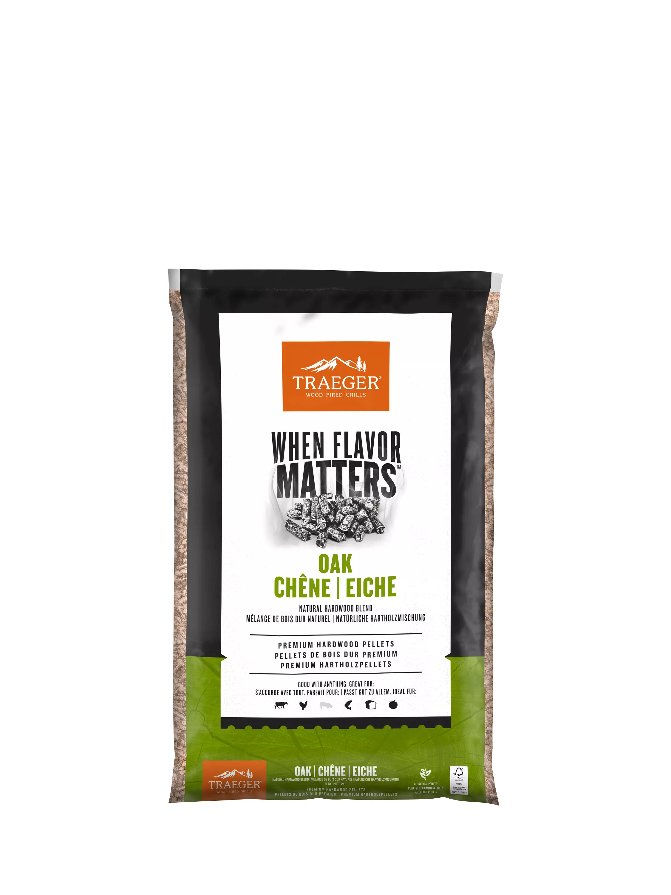 TraegerOak Hardwood BBQ Pellet Bag, 9kg