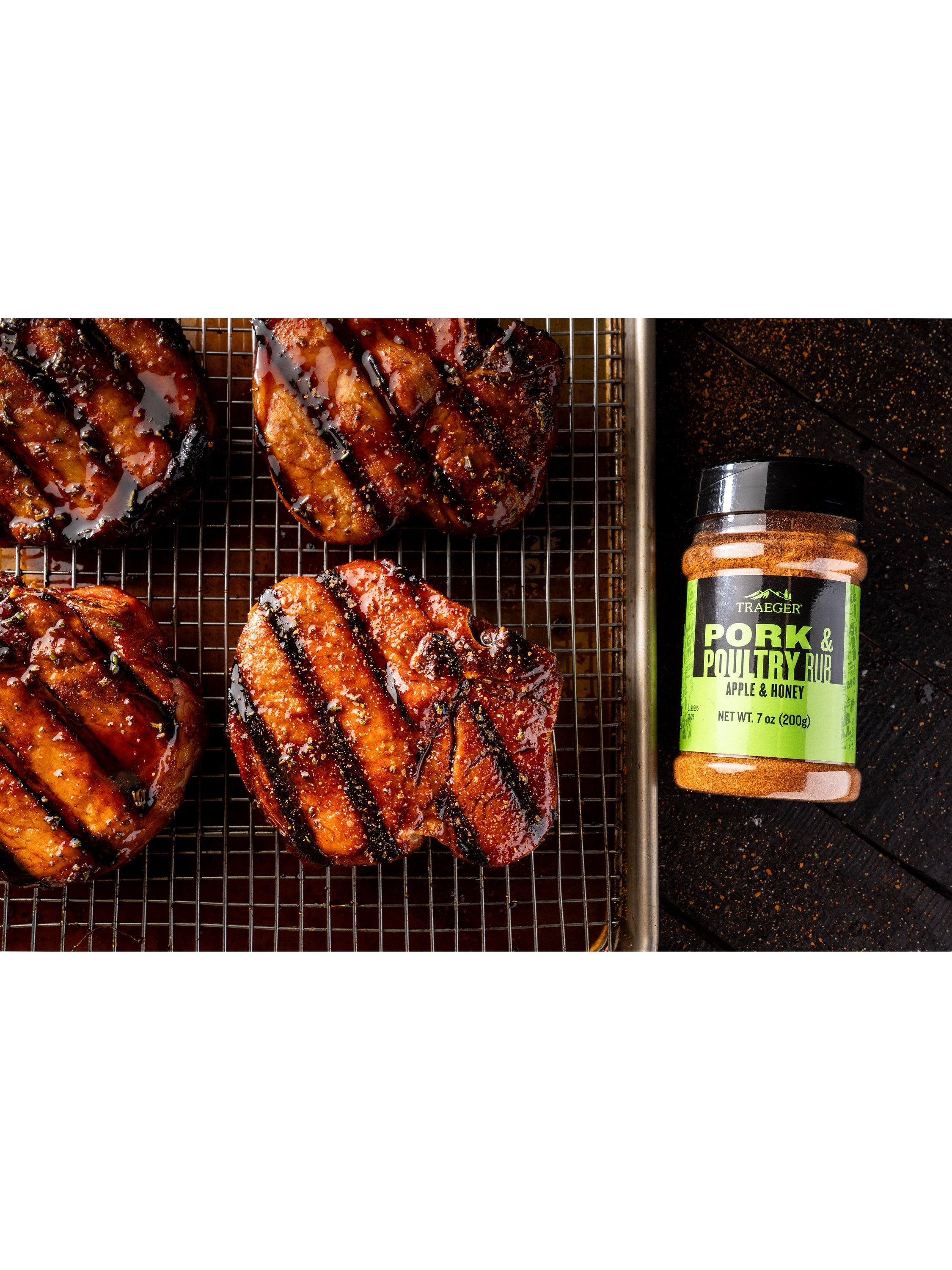 From pork chops to spatchcock chicken, give all your white meats an added dose of flavour with Traeger Pork & Poultry Rub. Paprika, onion and chili pepper bring savoury notes, while apple and honey add a touch of sweetness that's great for pork, chicken and other milder meats.
