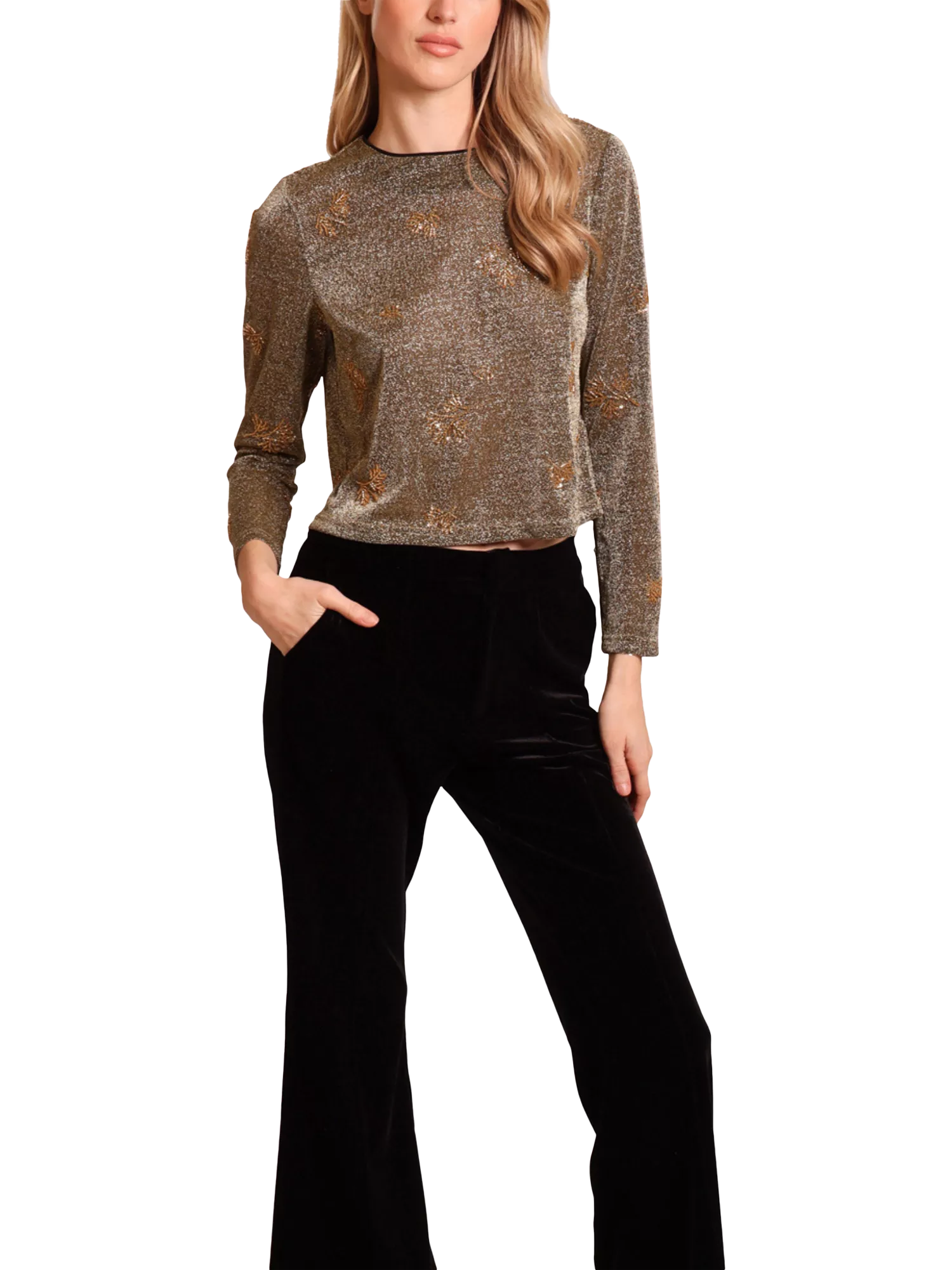 The Marge is a simple, yet stunning long sleeve top with a flattering round neck and a back zip fastening. The stunning glittery fabric is embellished with beautiful beading, making it the perfect piece to add some festivity to any outfit. Suitable for all occasions!