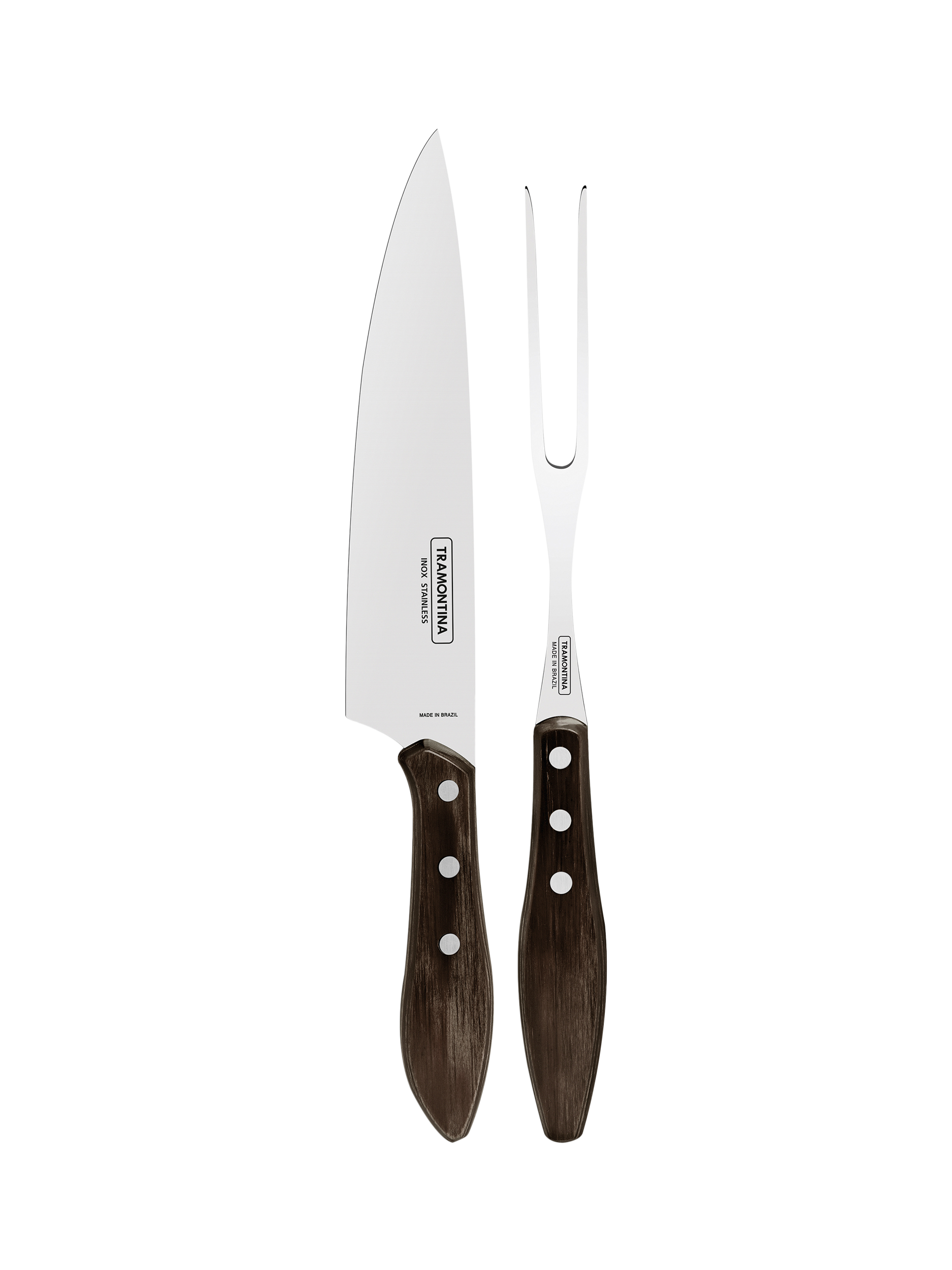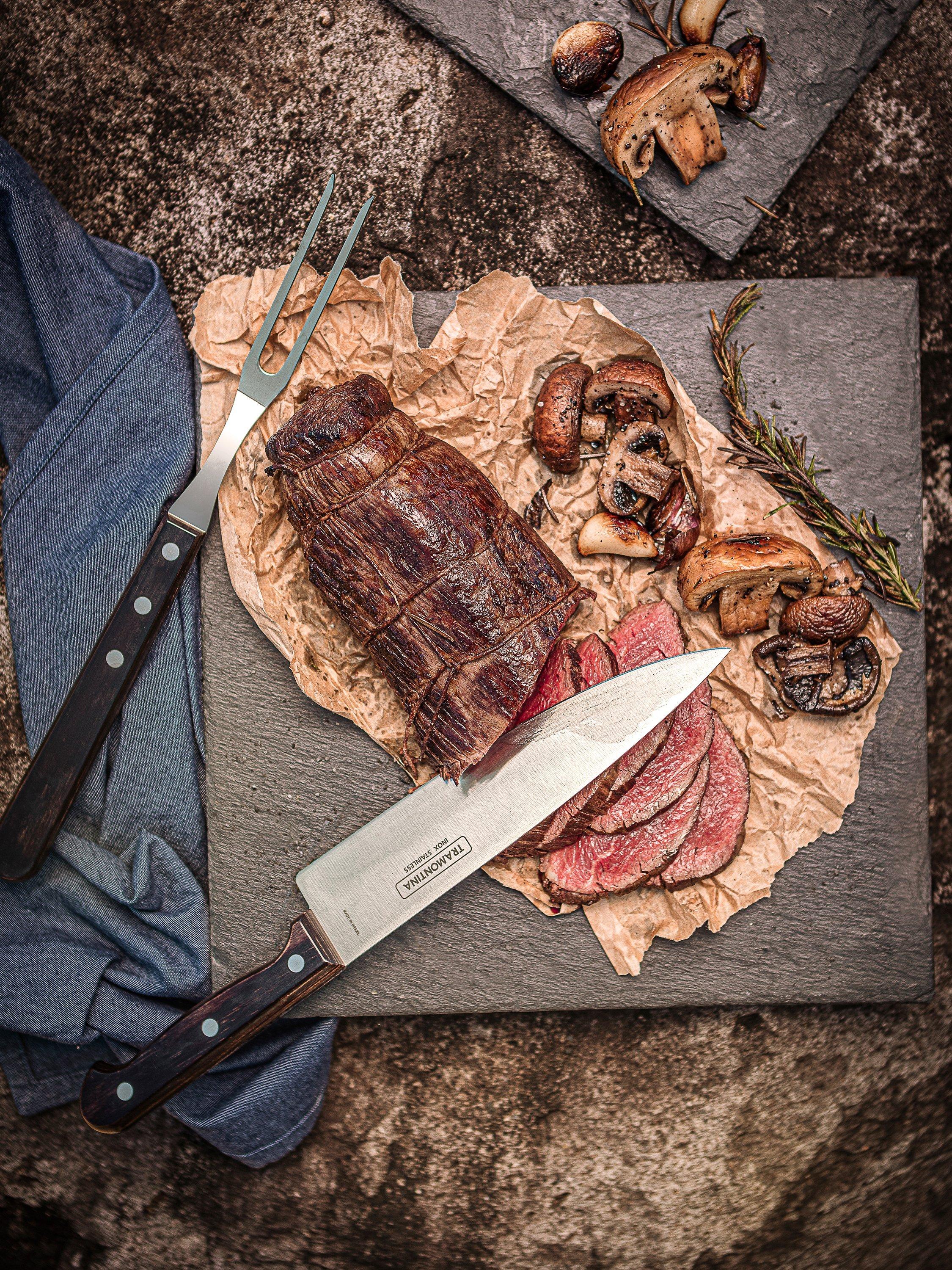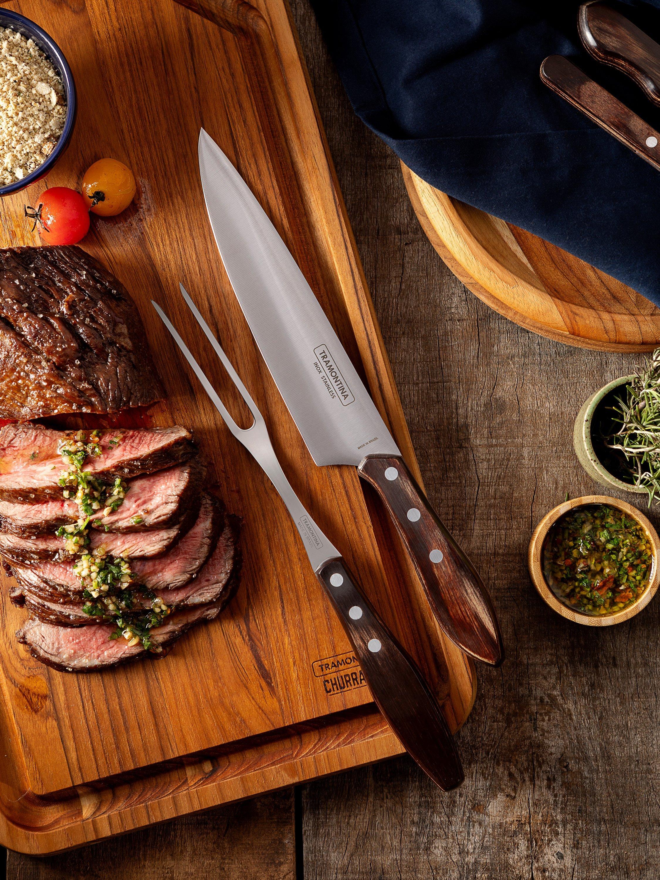 Tramontina Churrasco 8-inch (20.5cm) Carving Knife and a matching 16.7cm Carving Fork.