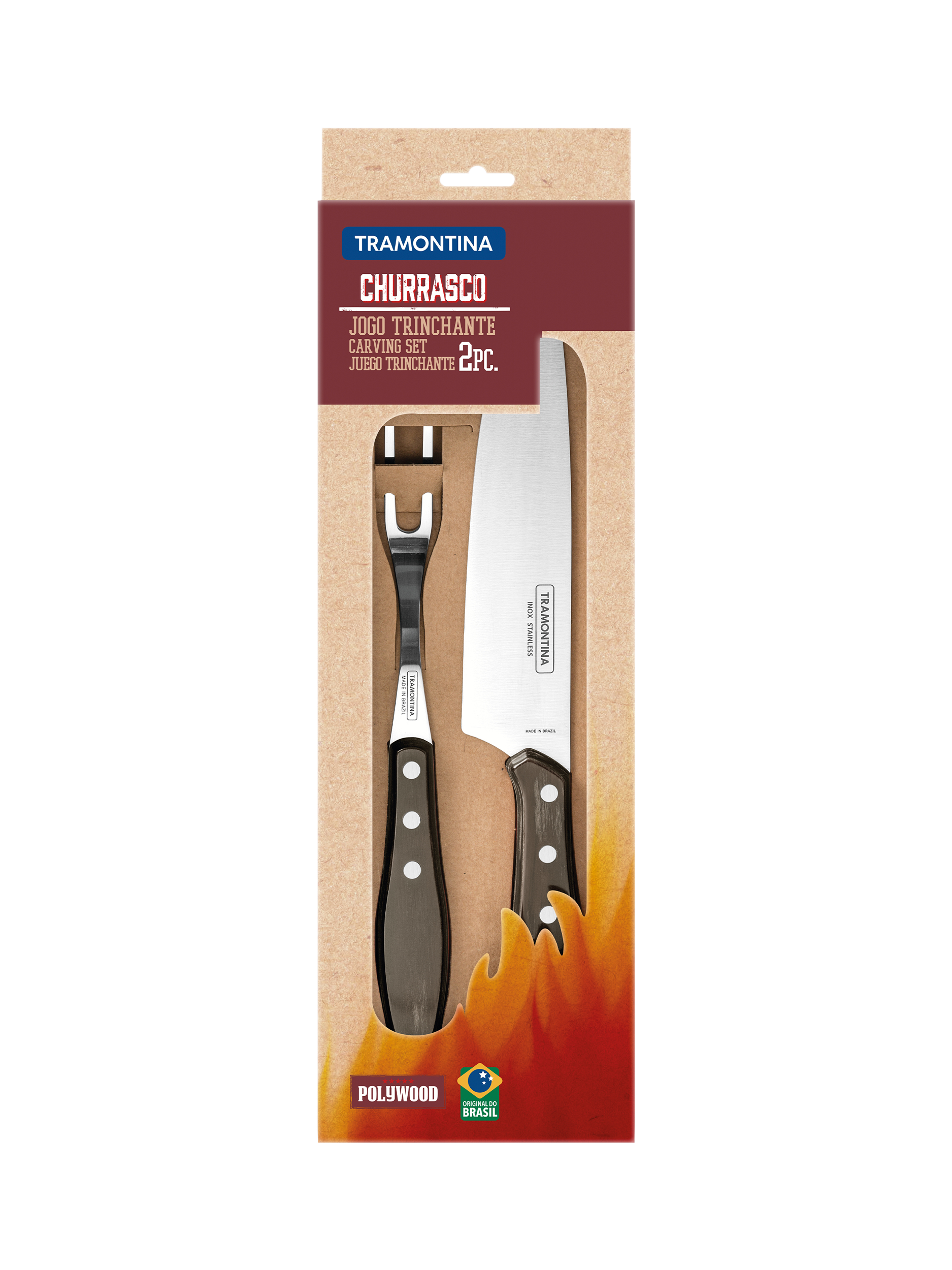 TramontinaChurrasco Stainless Steel Carving Knife & Fork Set with Polywood Handles, 2 Piece
