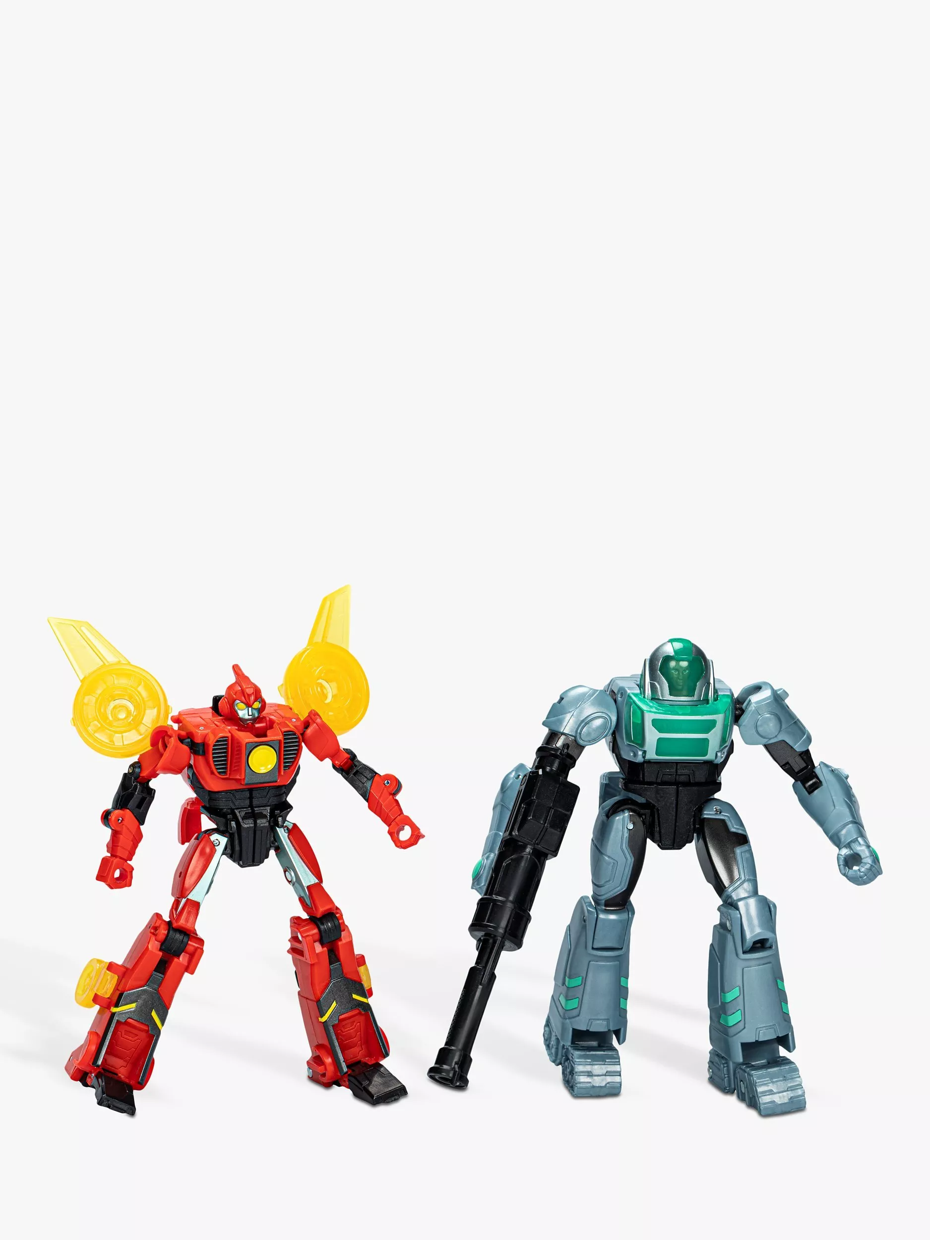 There are so many ways to play with the Transformers EarthSpark Cyber-Combiner set! Convert the Terran Twitch figure from robot mode to drone mode in nine steps, imagine Robby Malto in his Cyber-Suit rushing into battle, or combine the figures in two different ways to make a super-powered Twitch or Robby!