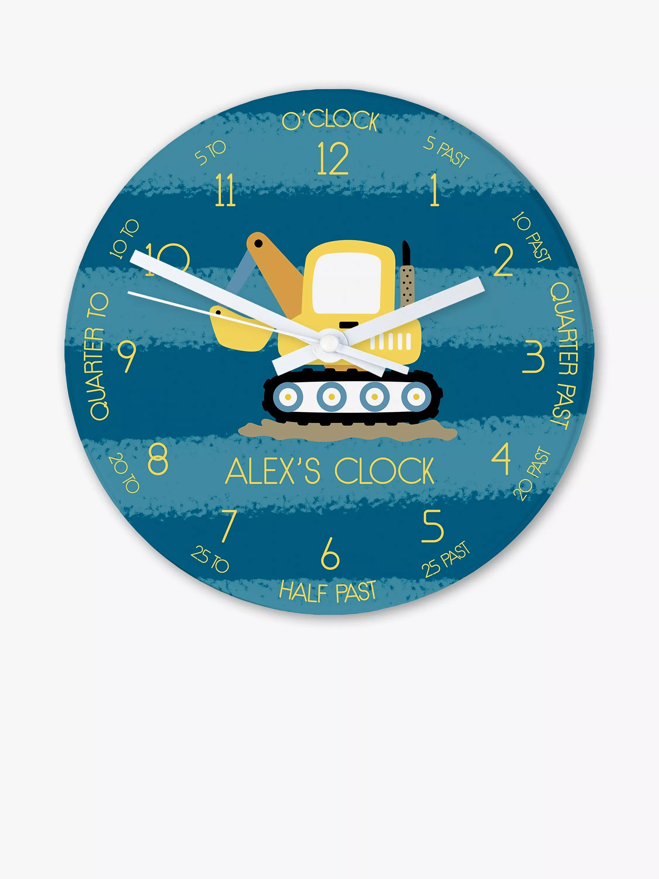 It's digger time! Help your child learn how to tell the time with this fun clock, which can be personalised with a child's name on the front. Ideal for hanging on a kid's bedroom wall, this glass wall clock makes a wonderful focal point with its bright and bold colour scheme.