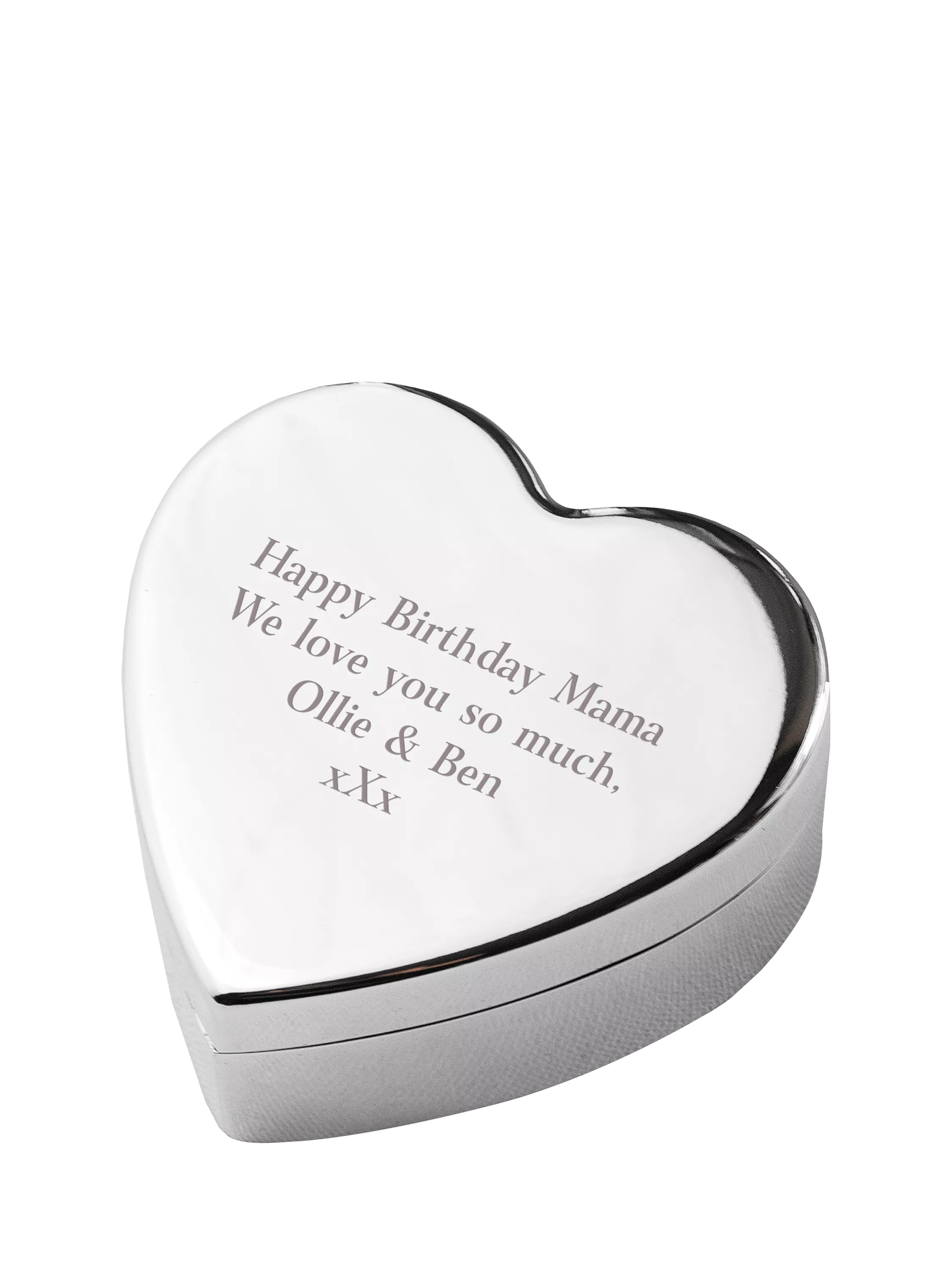 A beautiful trinket box to store jewellery is a bonus addition to any dressing table. The trinket box is lined with black felt safely protecting the rings earrings or necklaces from scratching or tarnishing. Personalise the heart trinket box to make it the perfect birthday Christmas or even couple's gift!