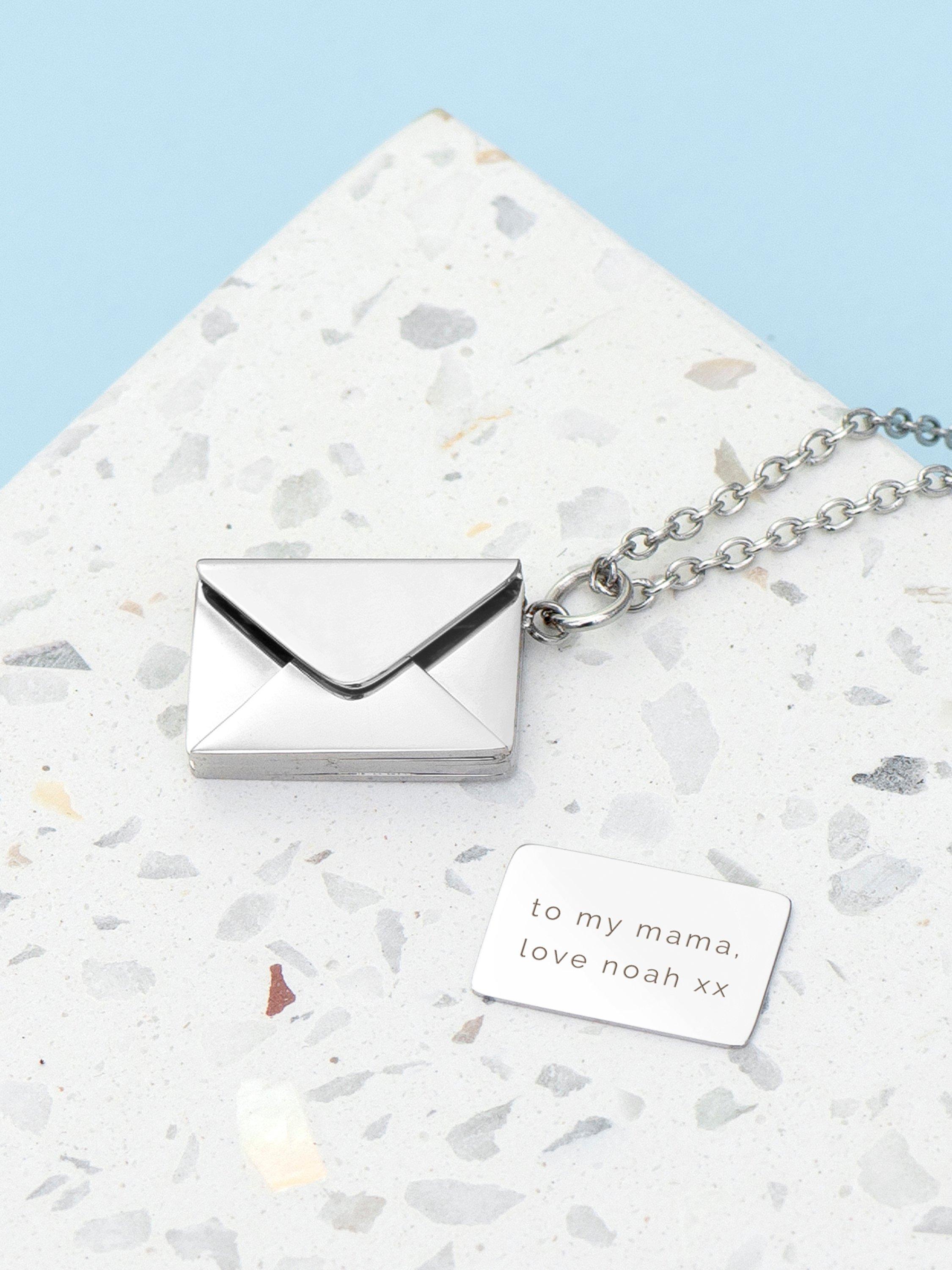 Get that special person in your life a beautiful gift for Valentine’s or an anniversary with our personalised secret message envelope necklace. This stylish accessory doubles up as a memorable keepsake your loved one will keep close to their heart and treasure forever. Open up the envelope pendant to reveal a hidden heartfelt message only the recipient will know about.