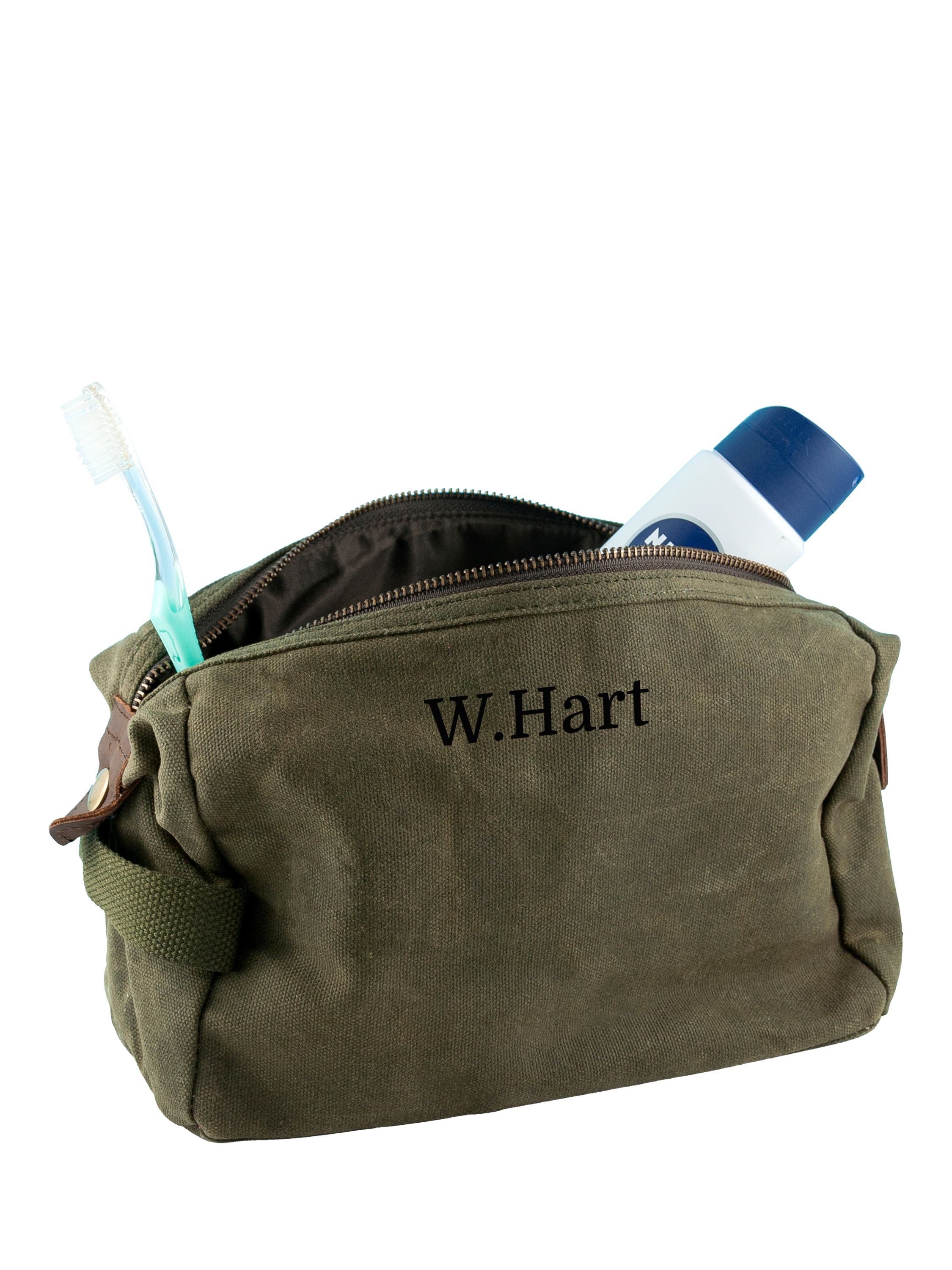 For that special person in your life who is always on the go, get them a gorgeous personalised vintage waxed canvas wash bag to keep all their toiletries safe and secure when they are off jet setting. It'll make the perfect birthday or Christmas gift for a keen traveller. Our waxed canvas wash bags feature genuine leather accents and a cotton webbing grab handle for ease of transportation. Perfect to personalise with a name or monogram and our amazing team of artisan creatives will do the rest.
