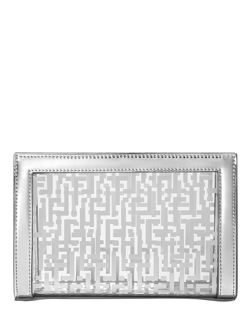 With a luxe silver logo pattern, our see-through makeup bag makes for the perfect travel companion.