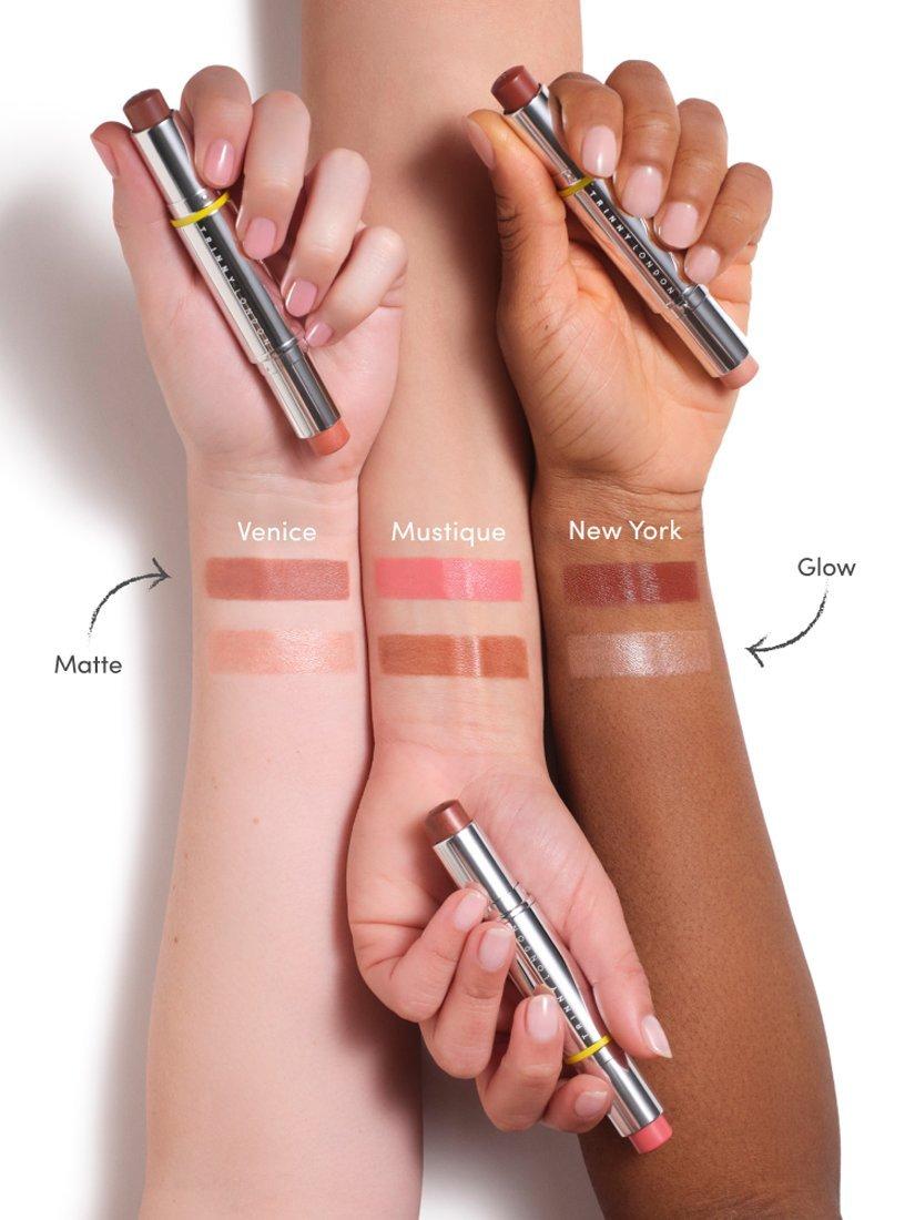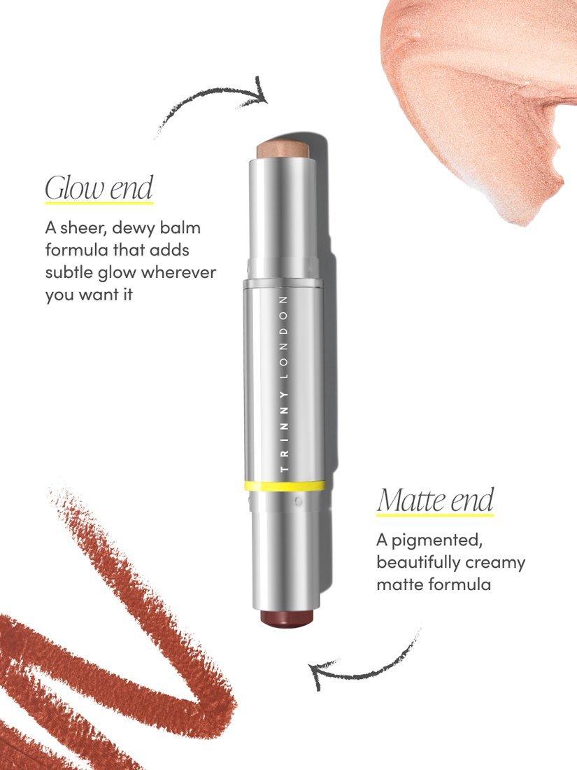 - Dual-ended design: one glow, one creamy matte. Both blendable, buildable, silky soft formulas for lips, cheeks and eyes