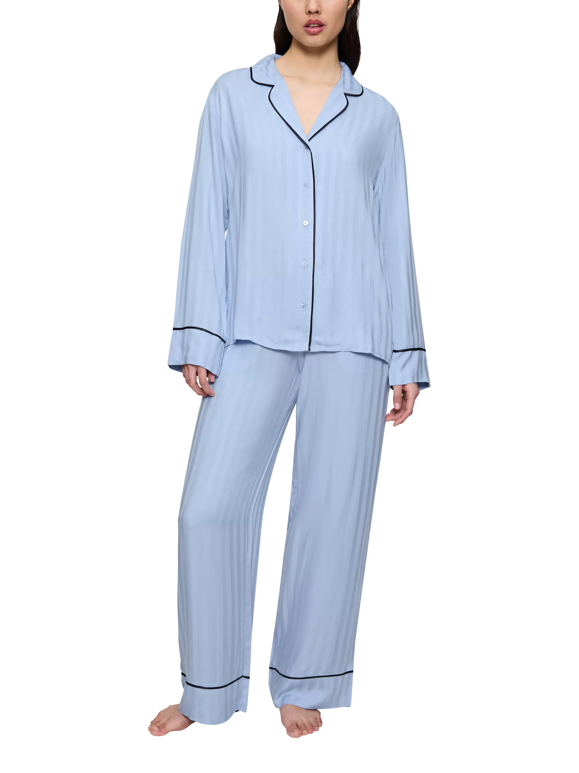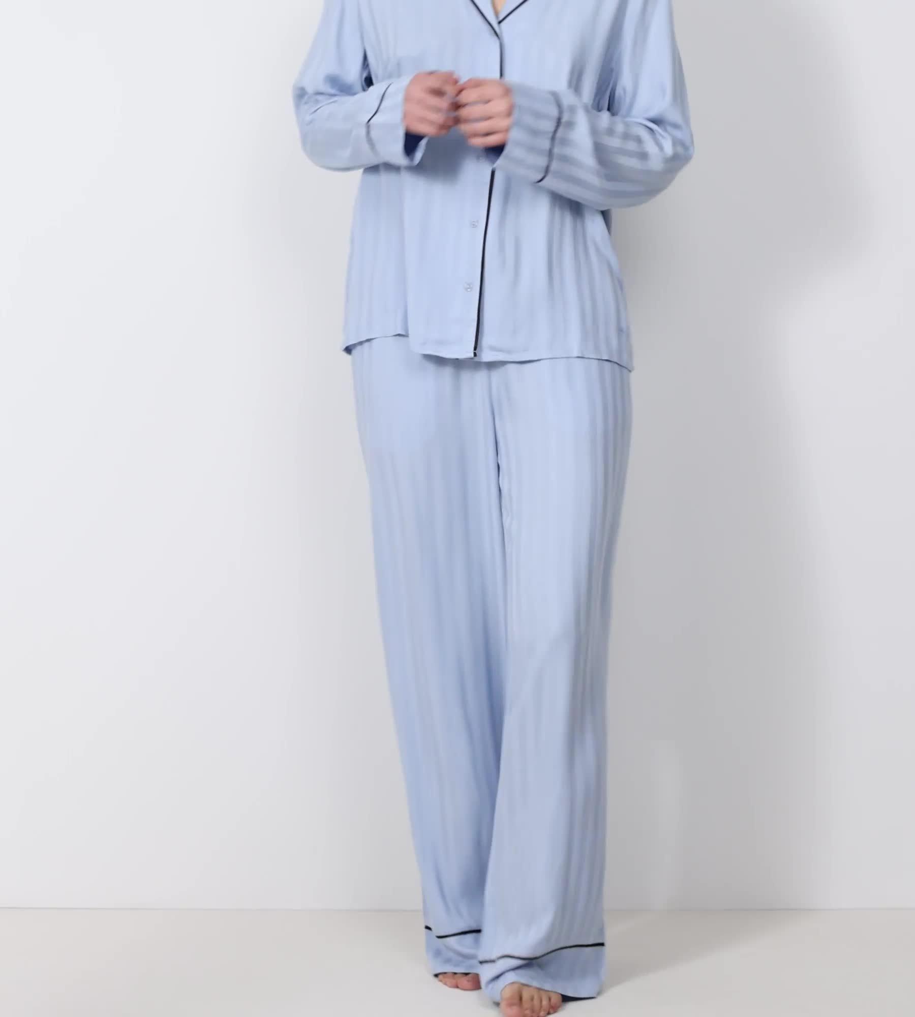 Swathed in stripes for a style that'll only encourage you to hit snooze, this long-sleeve pyjama set from Triumph is crafted from pure viscose for ultimate feel-good comfort and comes with matching bottoms.