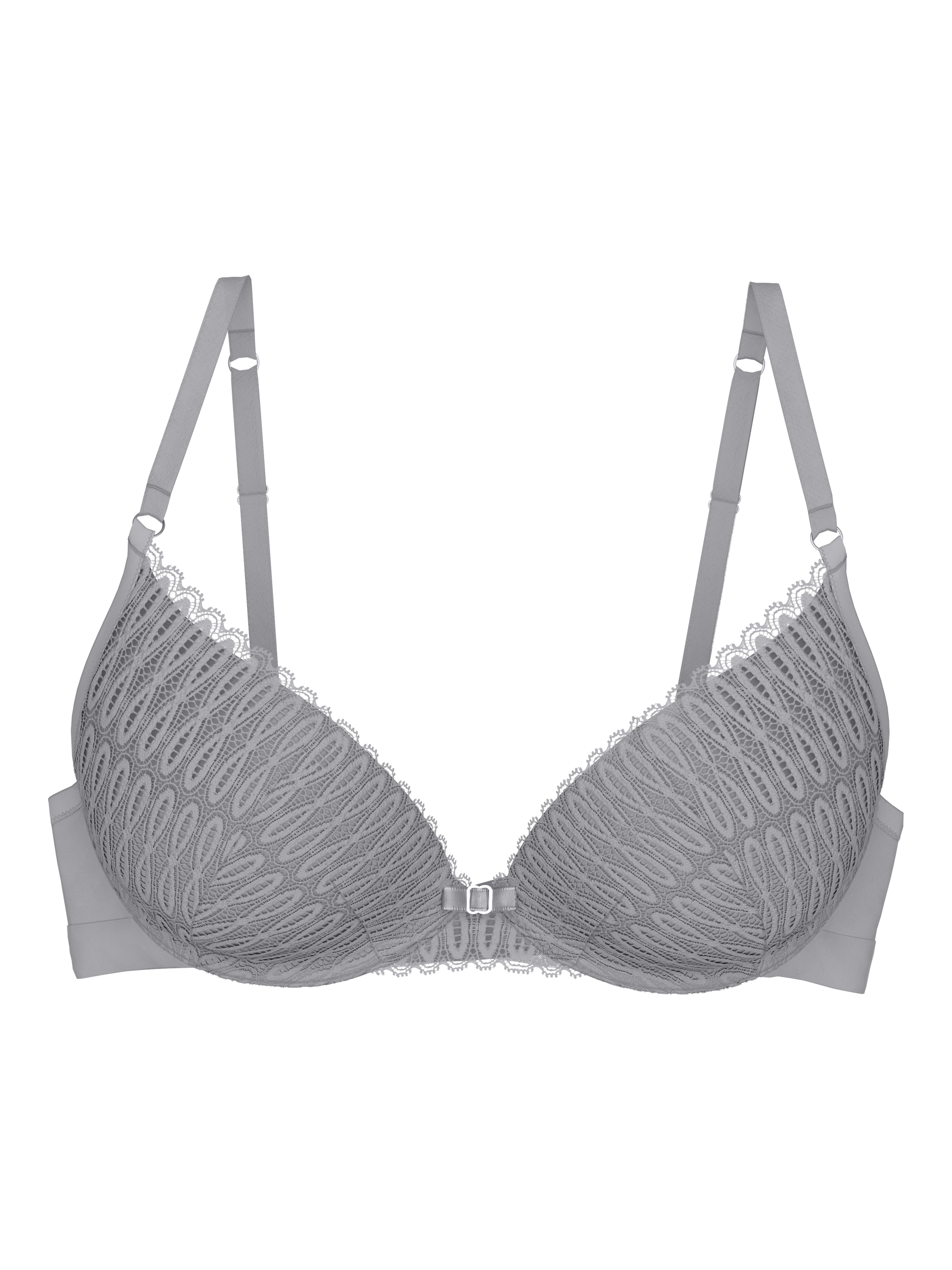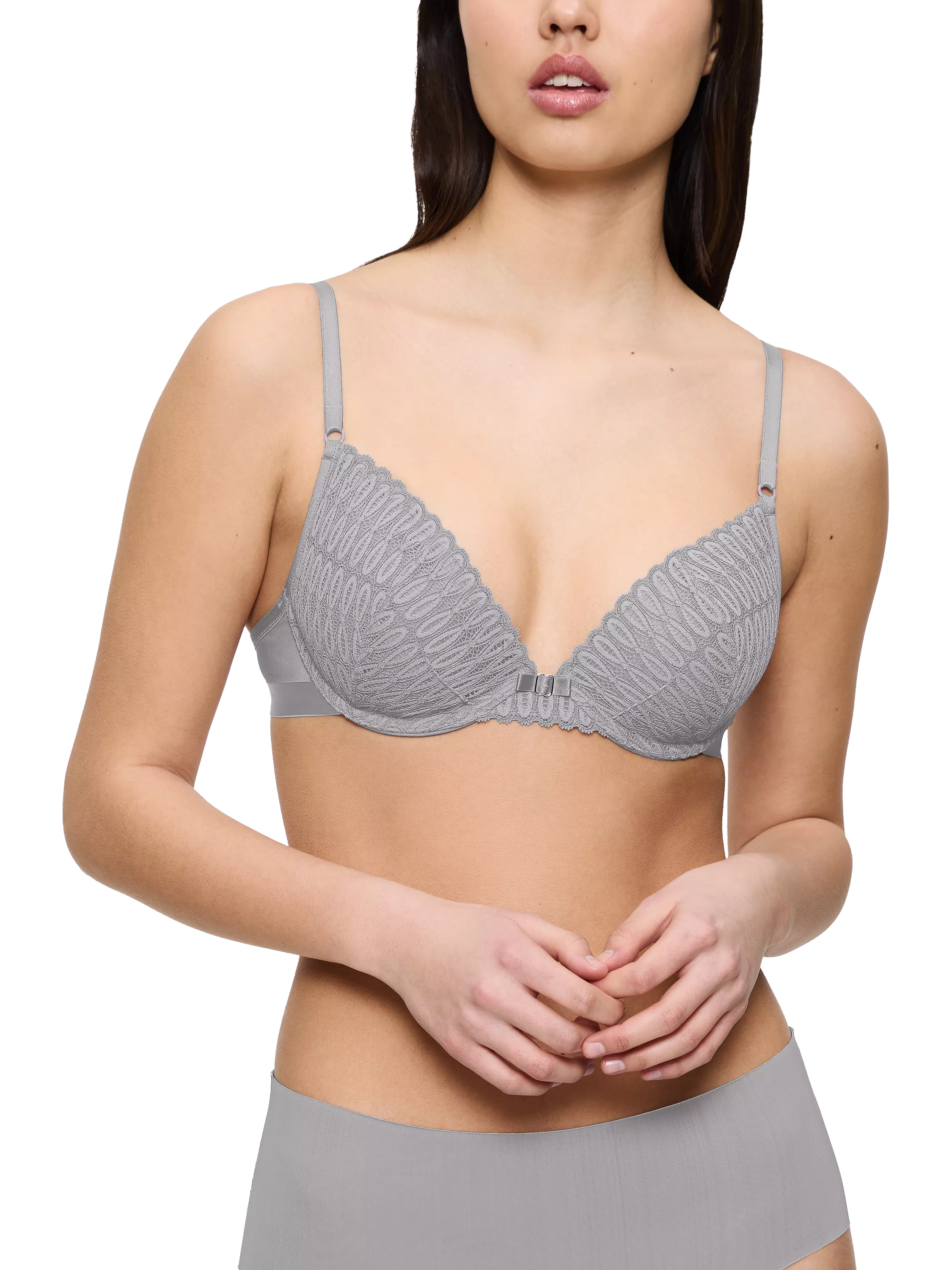 The Aura Spotlight lightly padded underwired bra from the Style series by Triumph. The elegant details and quality materials make this an especially eye-catching piece.
