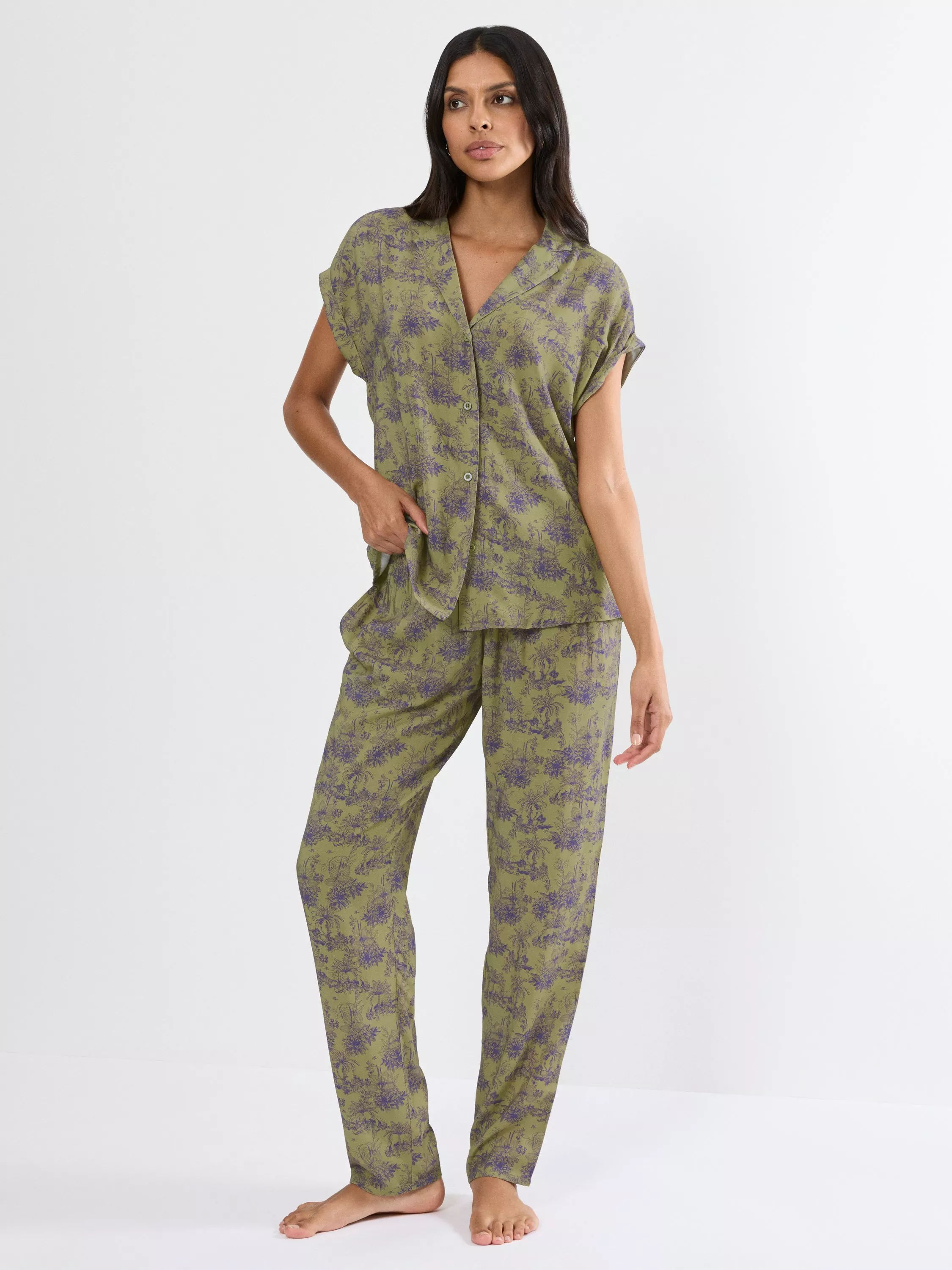 A short-sleeved boyfriend pyjama set with a relaxed fit. Designed entirely with soft, breathable and cooling viscose.
