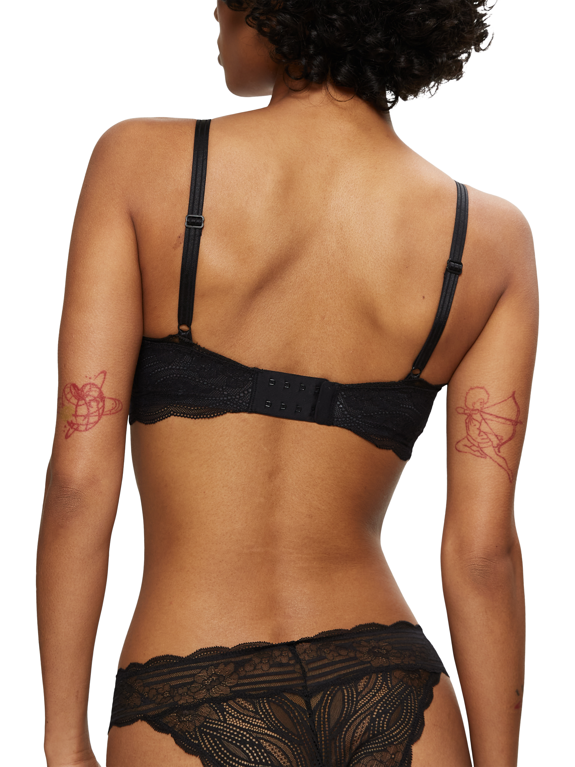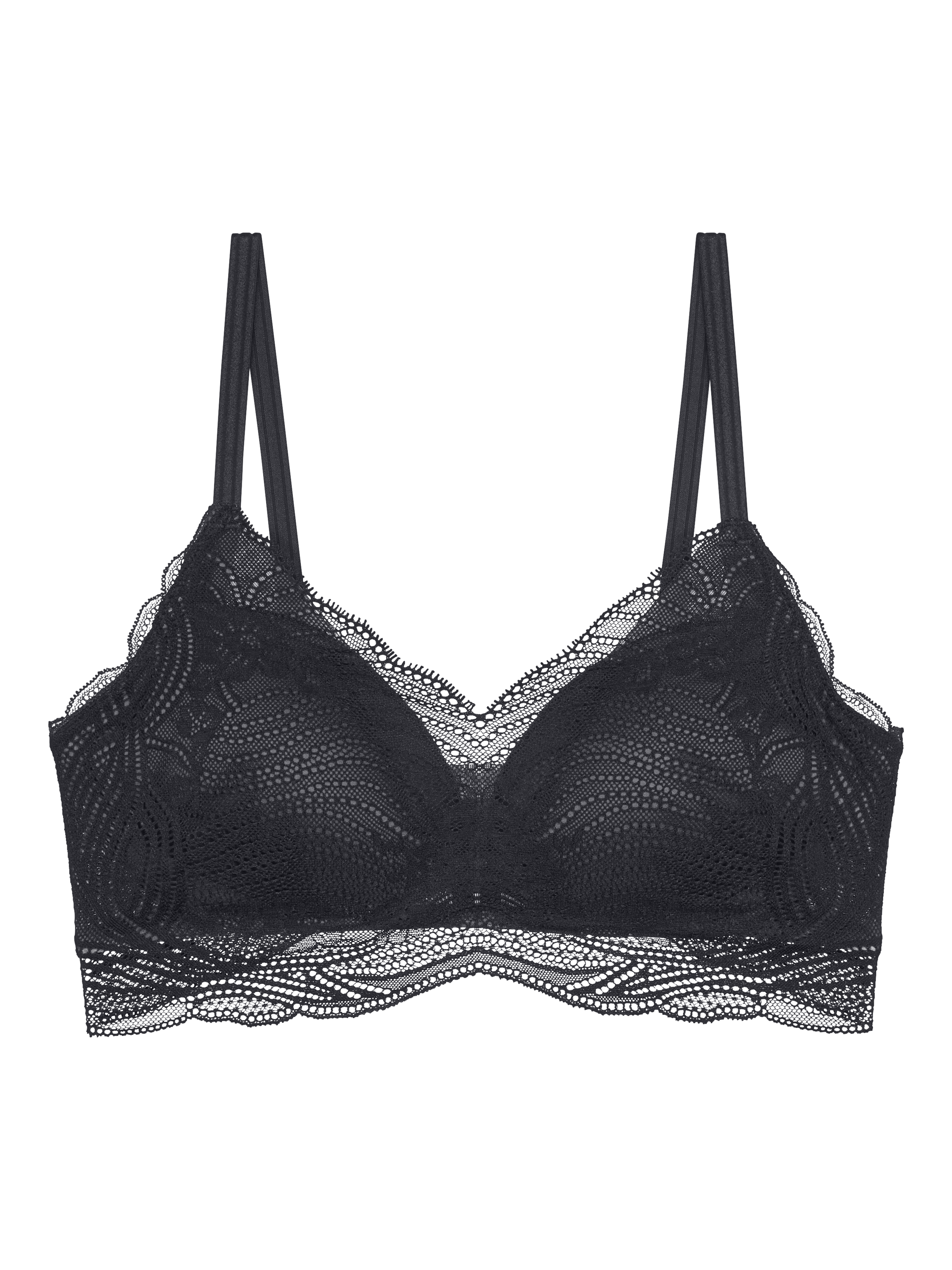 An irresistibly comfortable lace bra with all the smarts. Triumph added formfitting innovation to a single panel of stretch lace to smartly adapt to your shape. Featuring secret-lift and push-in features to rejuvenate the look of your breasts.