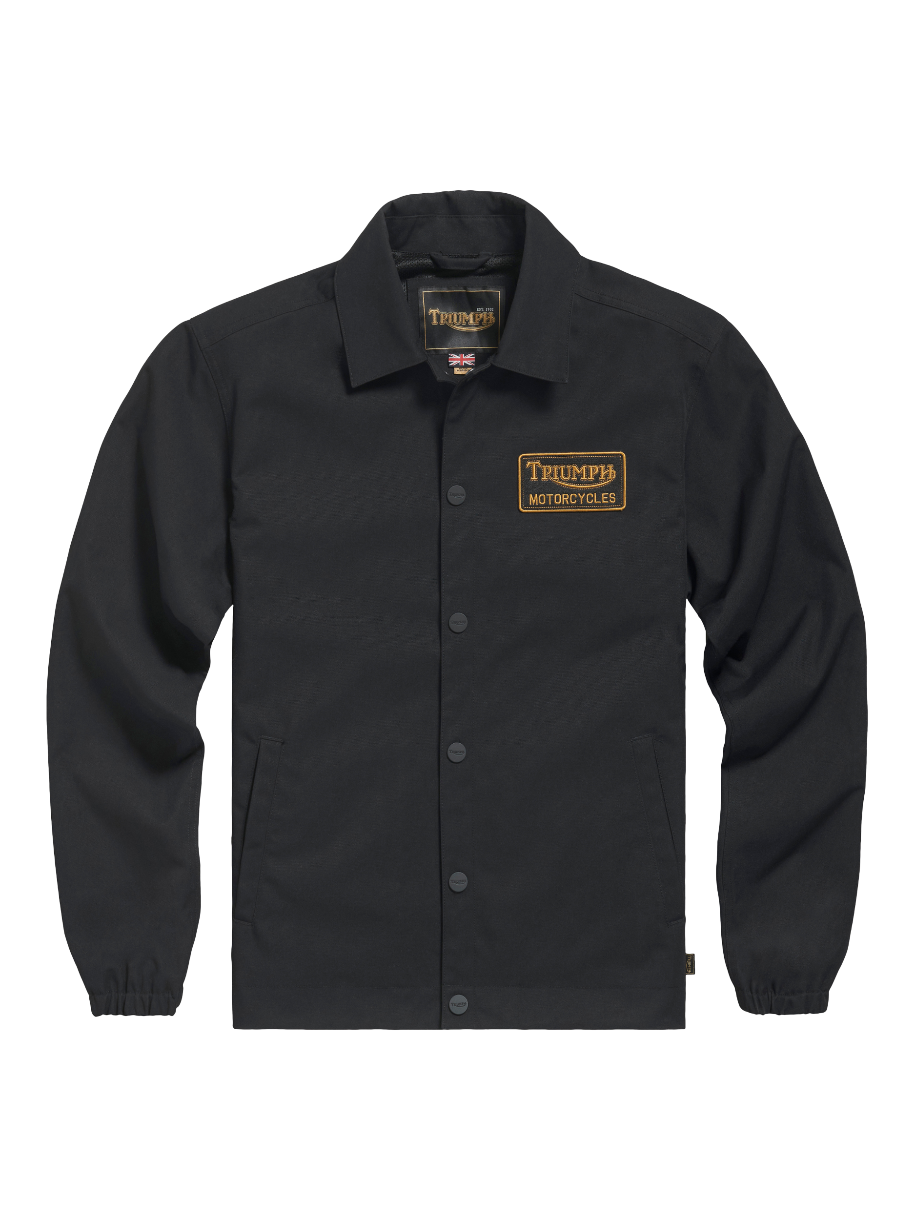Made with elasticated cuffs, two front pockets, branded rubberised popper fastenings and an embroidered Triumph Heritage badge.