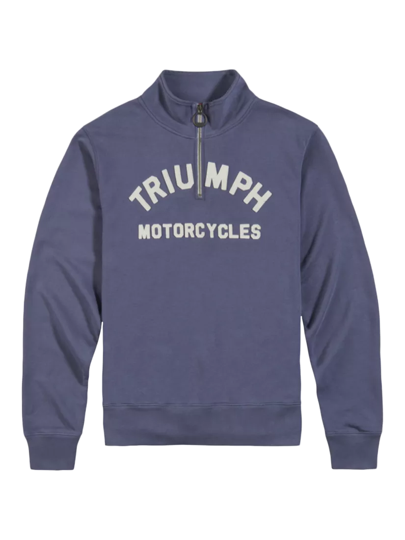 Crafted for those who demand quality, durability and style. Featuring felt Triumph Motorcycles applique lettering on the chest, brass branded pull-tab, rib-knit cuffs and hem.