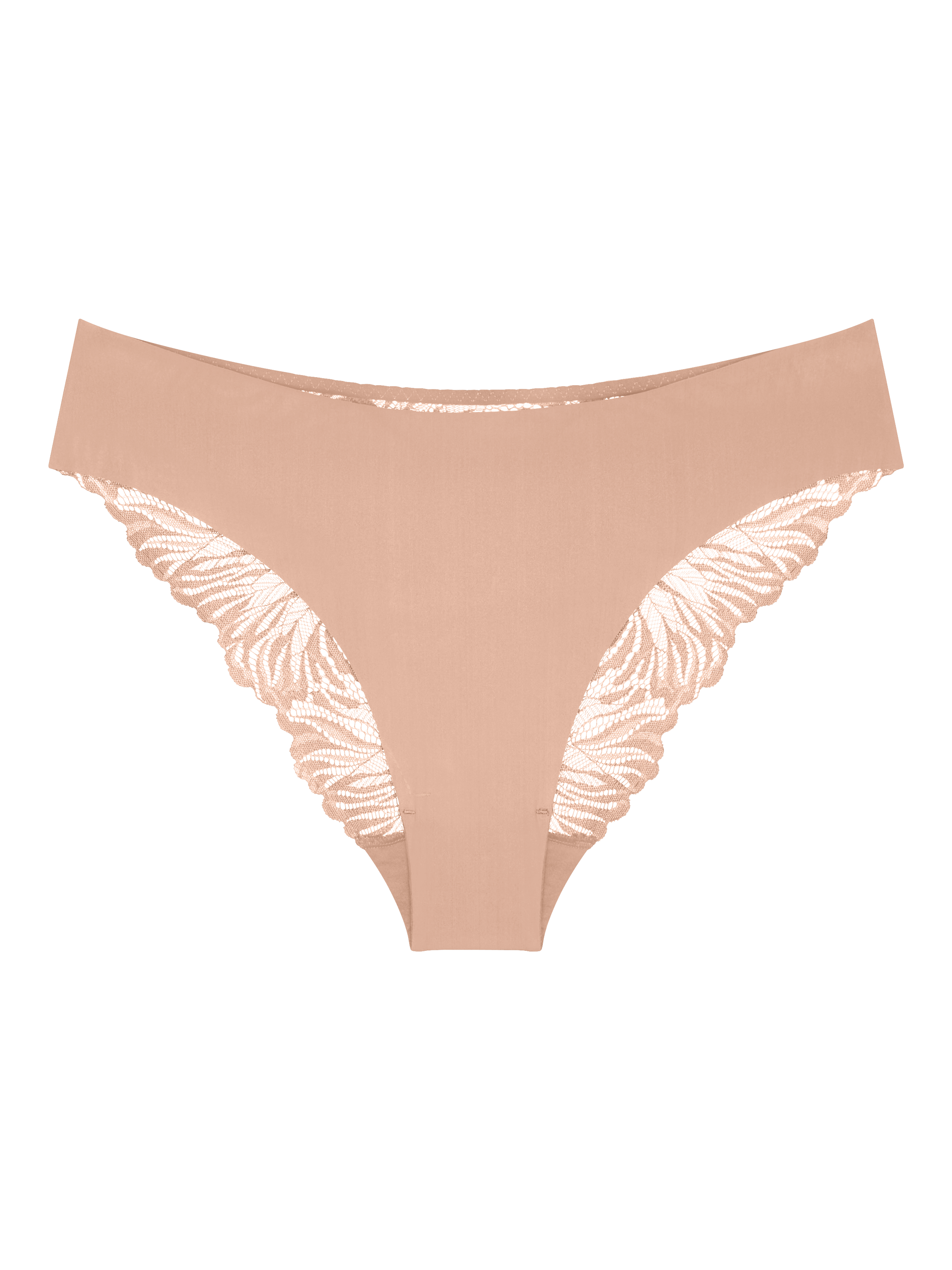 This medium-coverage tai combines comfort with freedom of movement. It offers a full microfibre front and a feminine organic lace finish back.