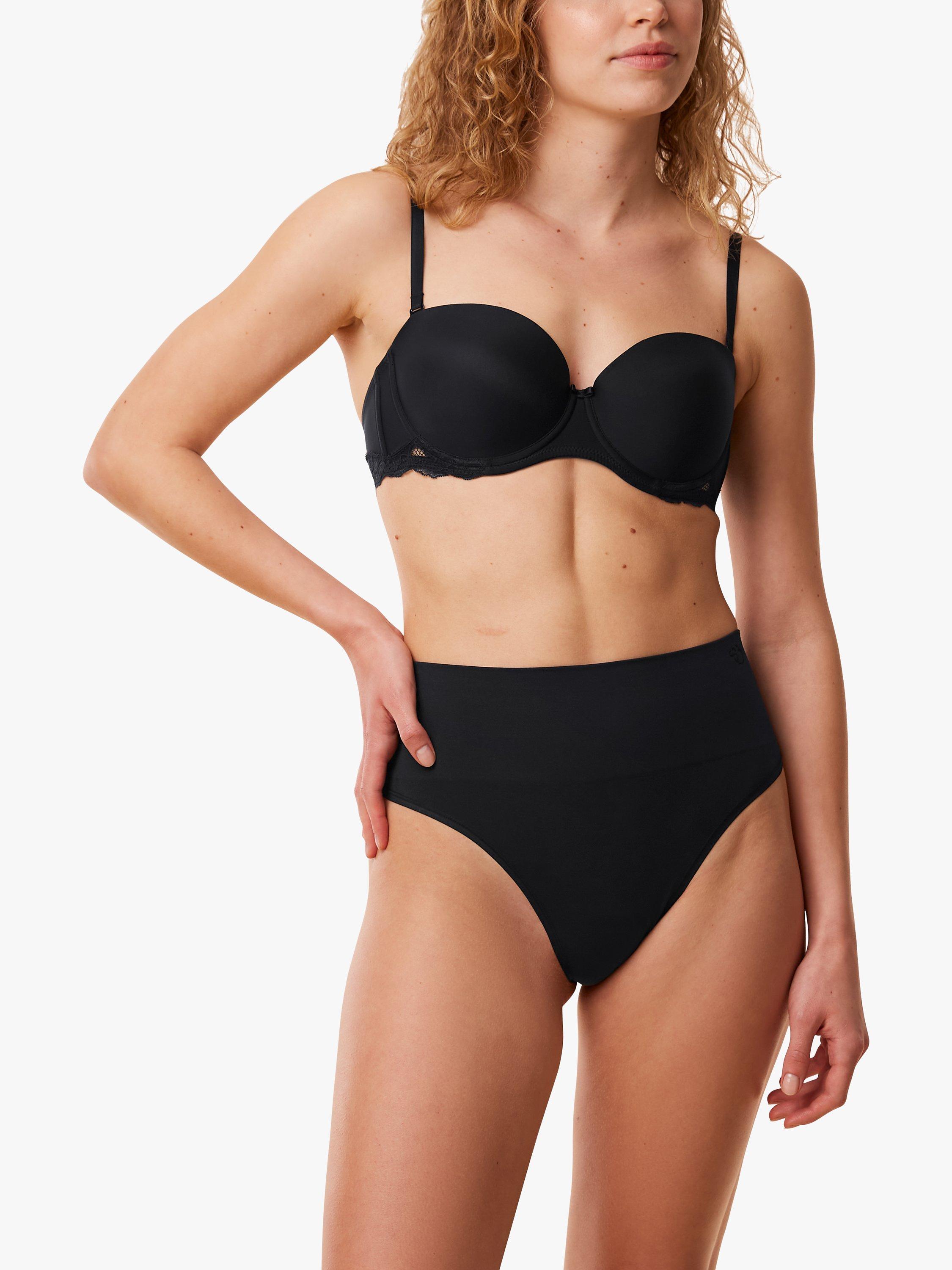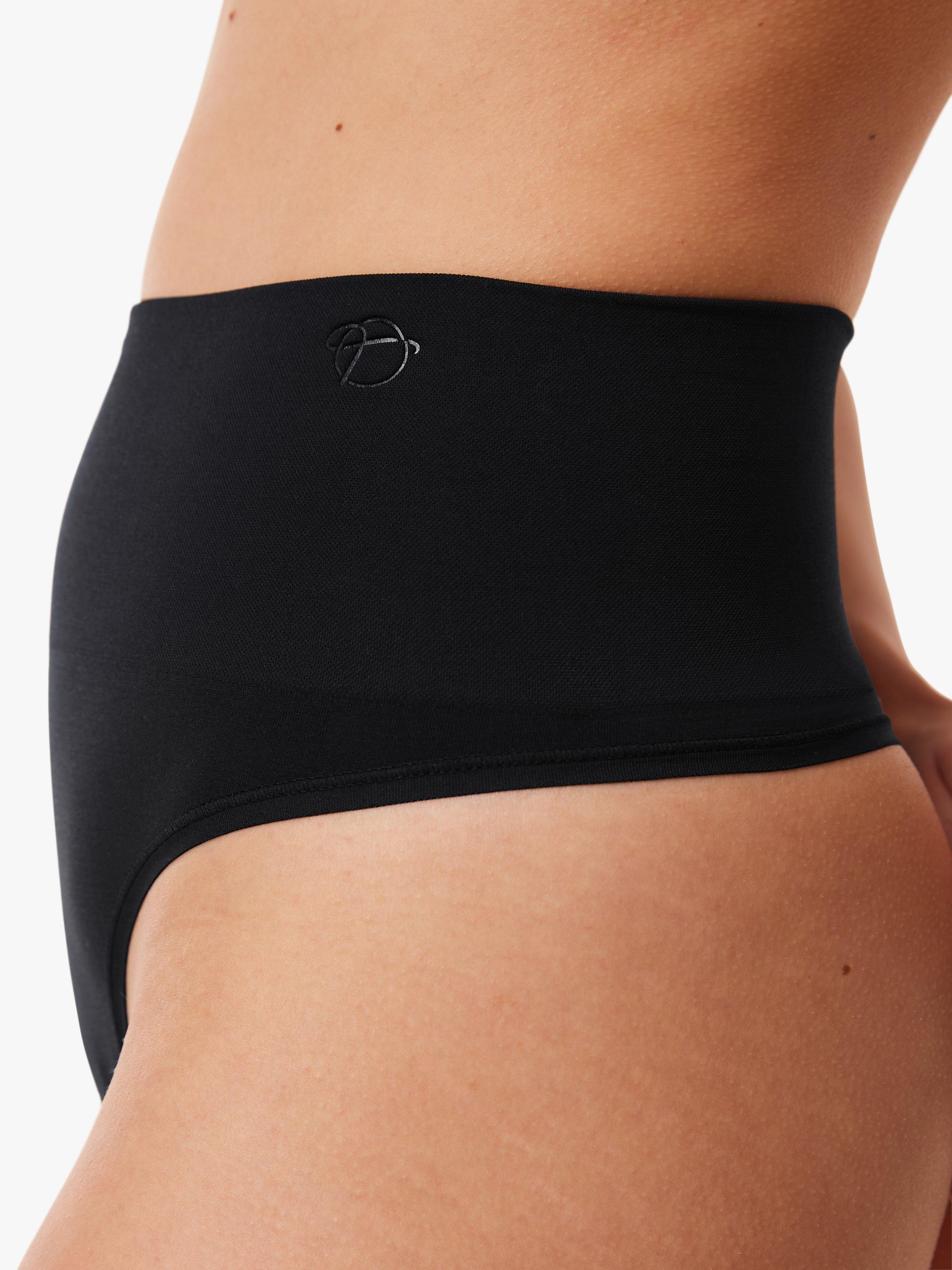 The Bandeau string is a minimal-coverage brief made of partially recycled smooth and soft polyamide. The seamless knit technology provides both comfort and a medium belly-sculpting effect.