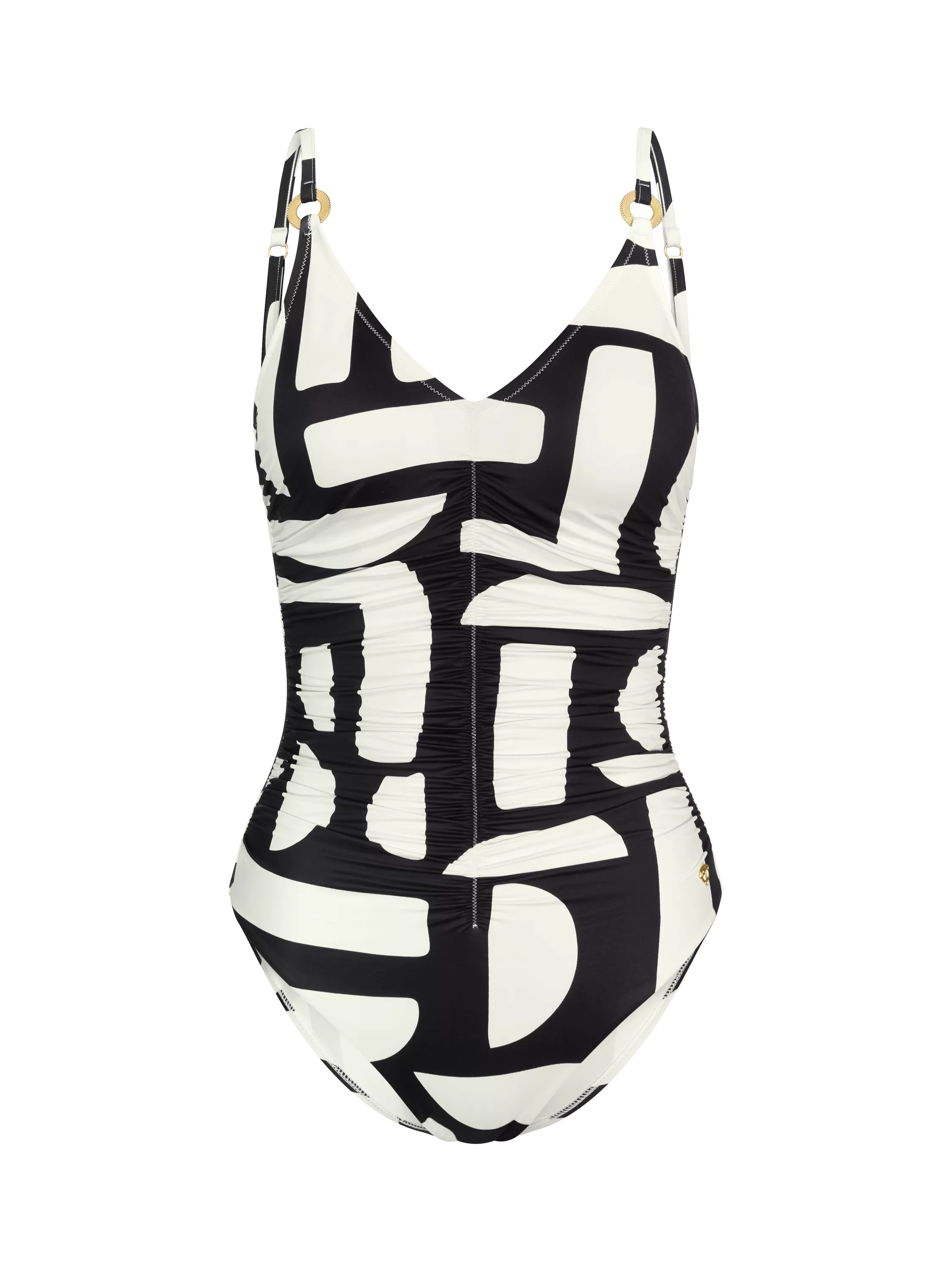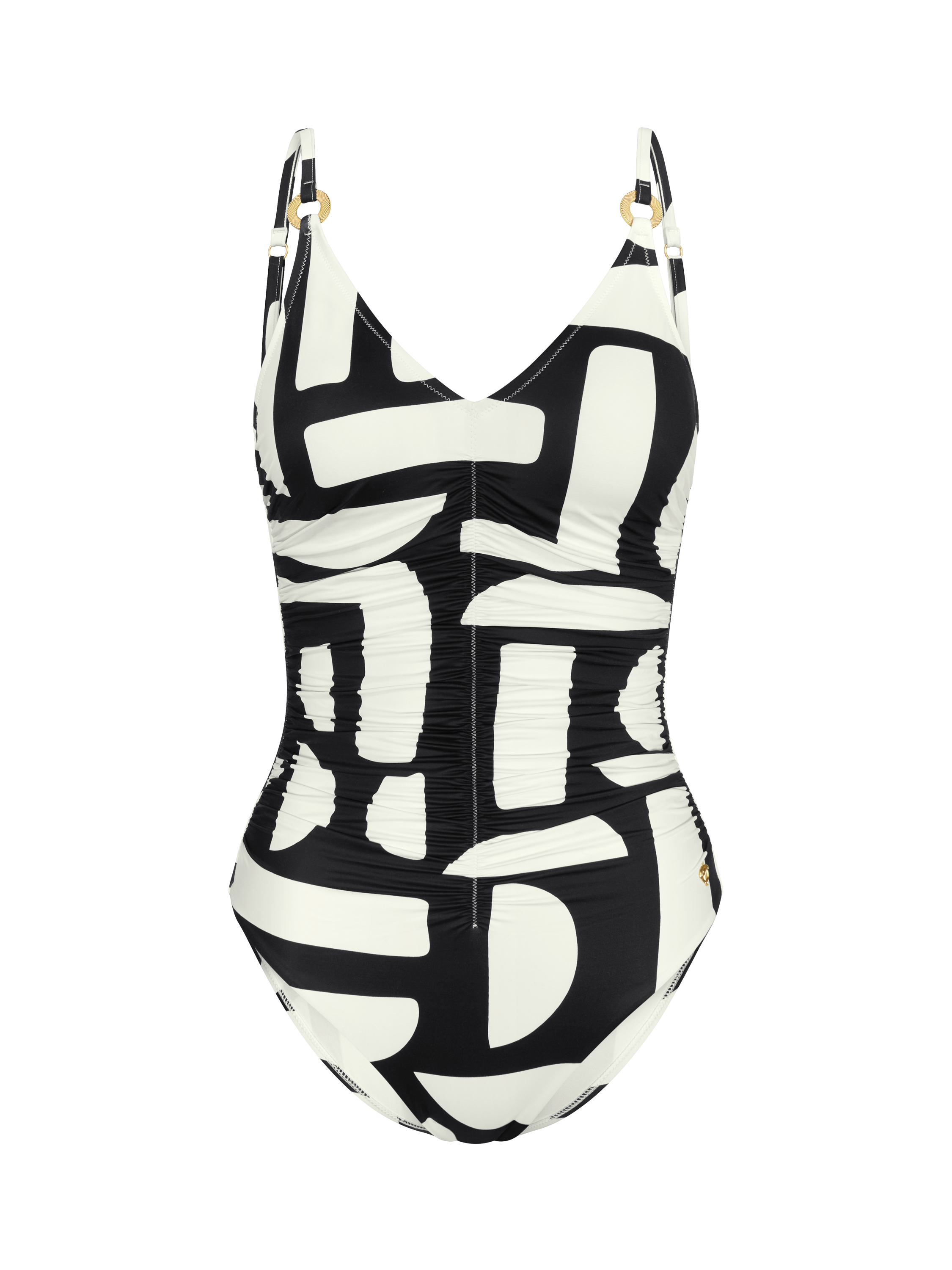 This padded, non-wired swimsuit features ruched fabric for a more flattering look. Made with partially recycled polyamide, it is soft to the touch and built to last.