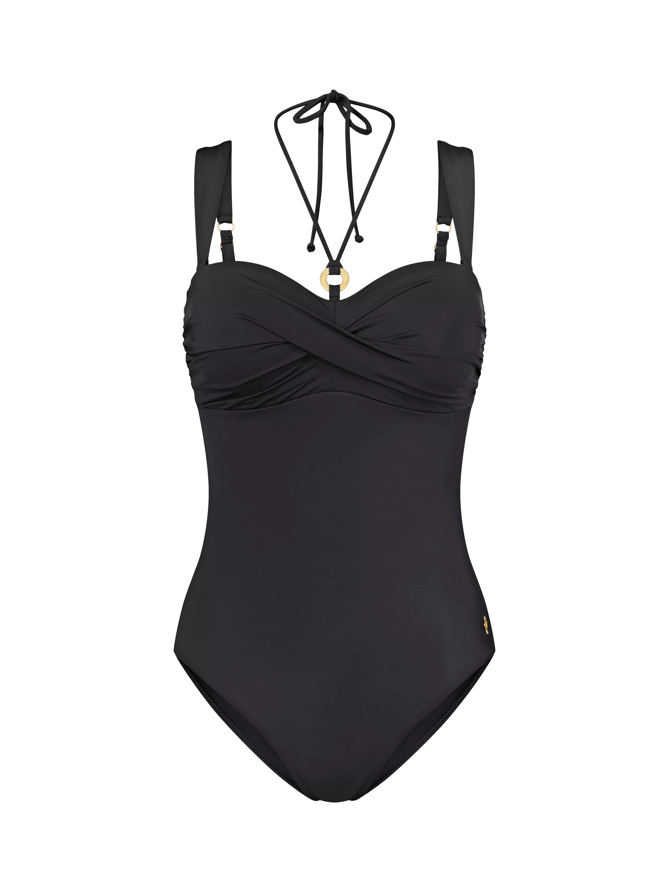 This padded swimsuit is designed for women seeking comfort and multifunctionality. Thanks to the detachable and adjustable straps, it can be worn as a one-piece bandeau without compromising support. The ruched centre-top creates a flattering touch, and the partially recycled polyamide makes it soft on the skin and built to last.