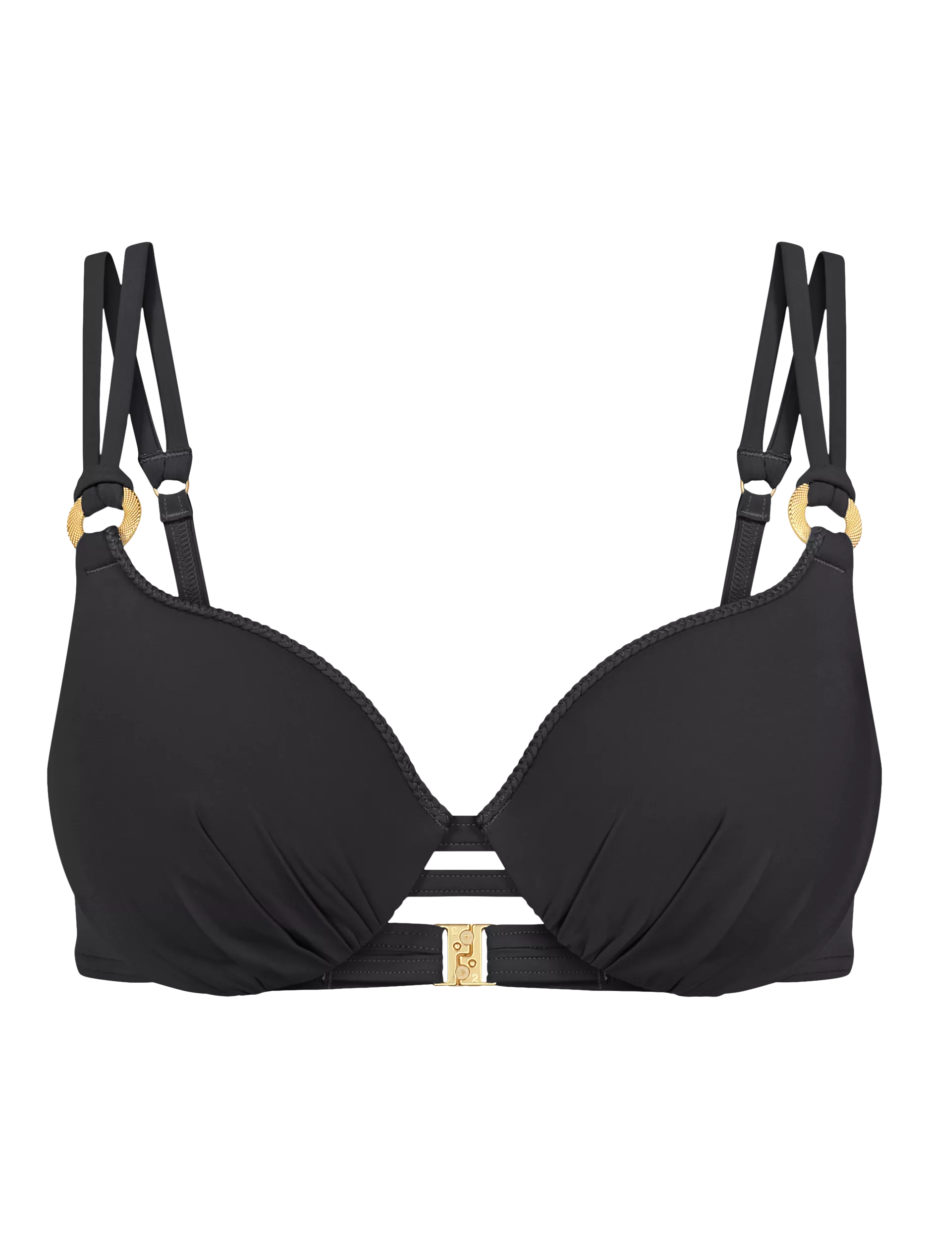 This wired, padded bikini top offers a modern look, great comfort, and enhances cleavage. Decorative rings adorn the straps, adding a touch of style. Made with partially recycled polyamide, it is soft to the touch and built to last.
