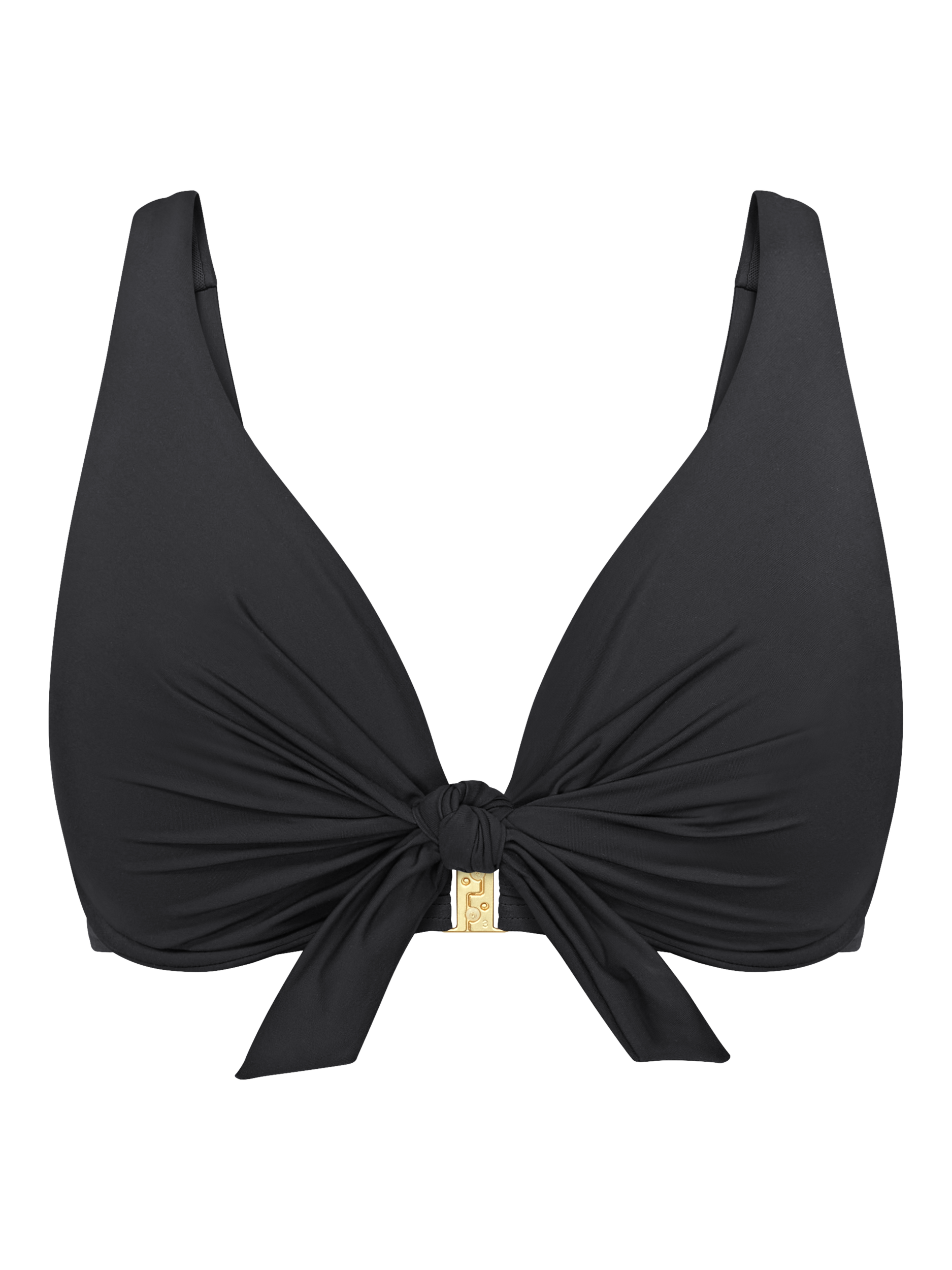 This wired bikini top embellished with a central knot, features a flattering deep plunge neckline. Made with partially recycled polyamide, it is soft to the touch and built to last.