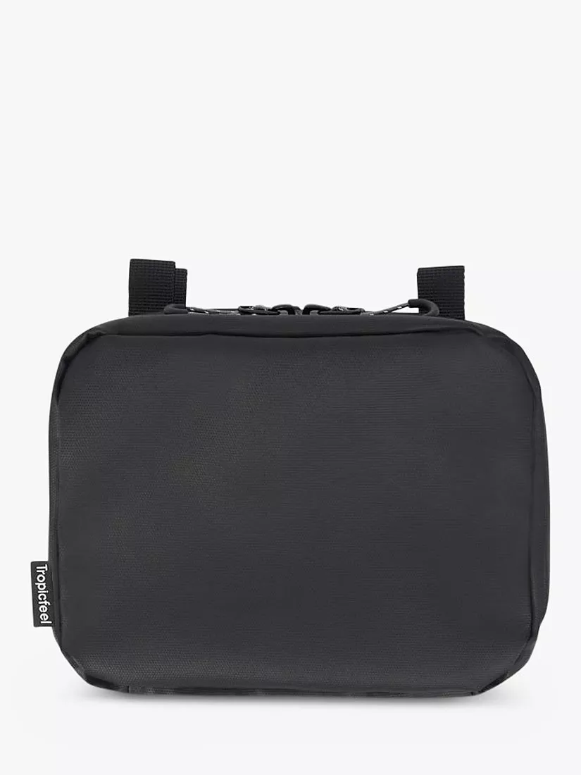 Easy full open access with double zipper and you can hang it up with the attached hook if needed. Includes a mesh zippered top compartment and open mesh compartment. Water and leakproof.