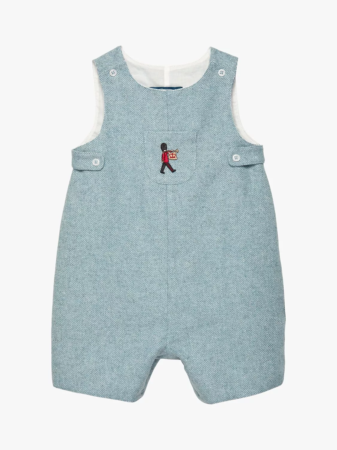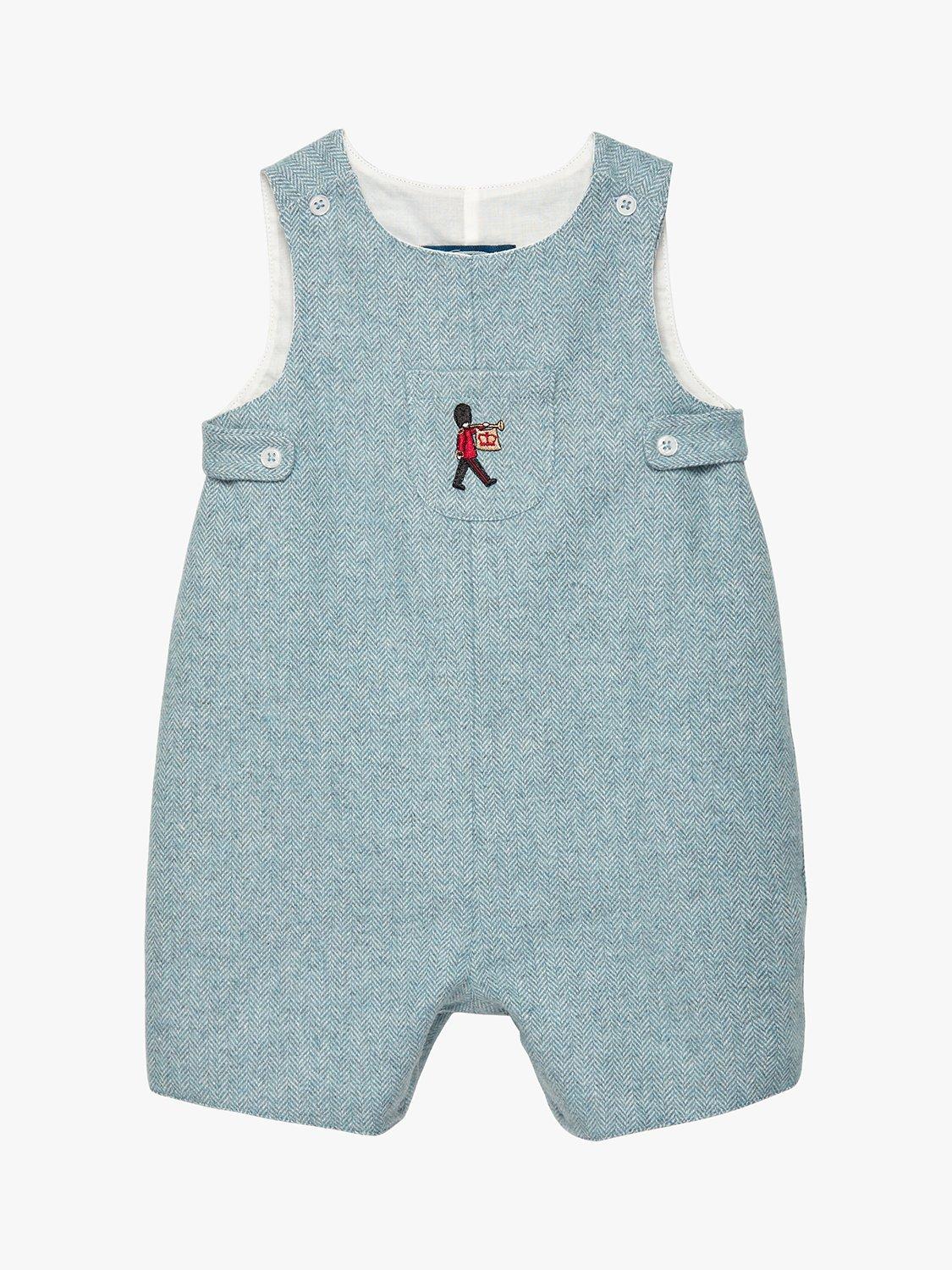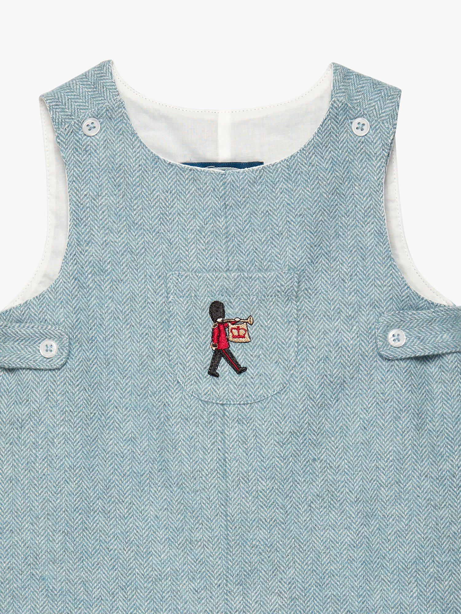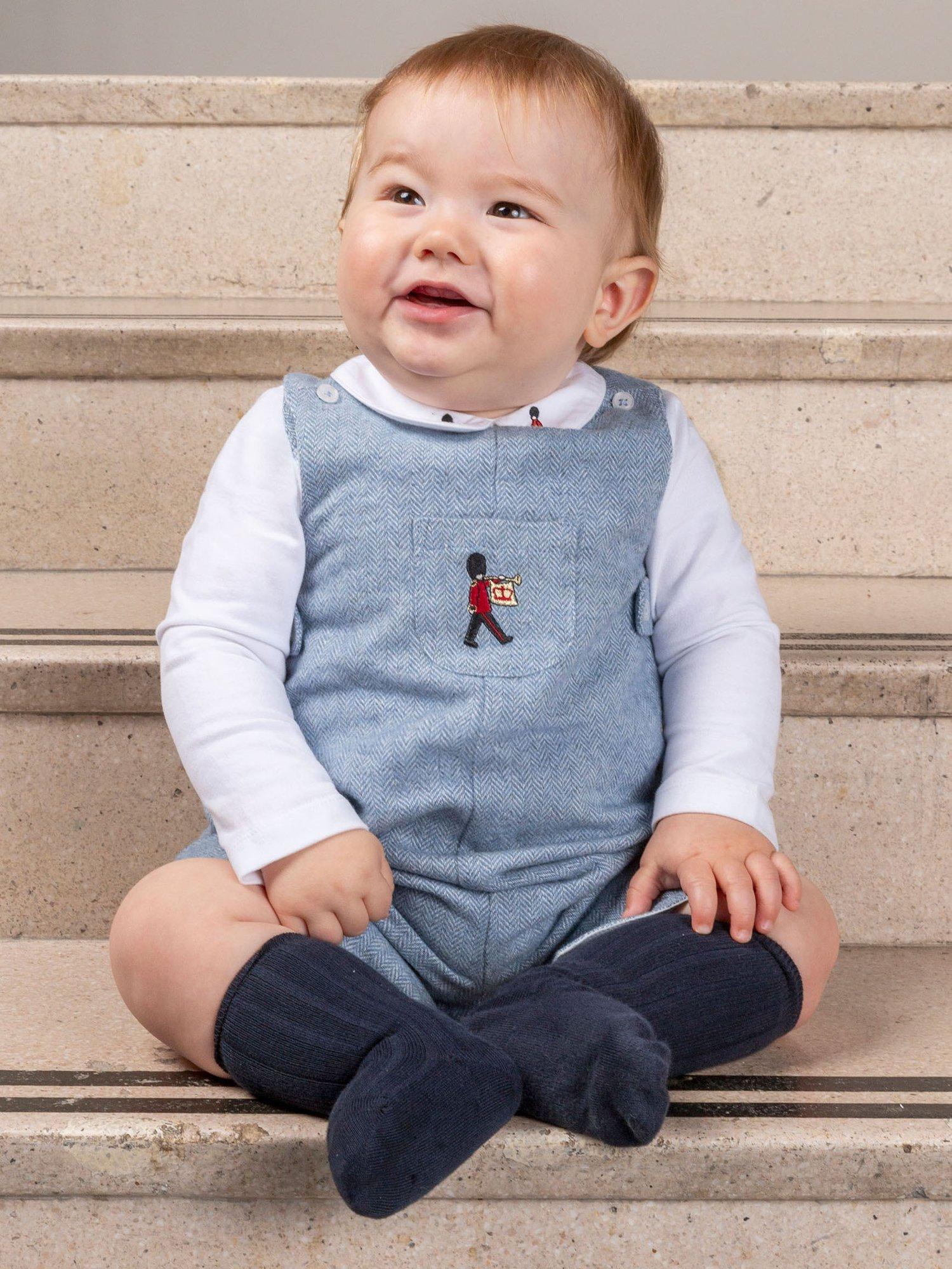 This one-piece is made from a soft cotton mix with handy popper fastenings at the legs for easy dressing and changing. Fully lined in pure cotton, it's decorated with classic guardsman embroidery detailing and features pearlised button fastenings.