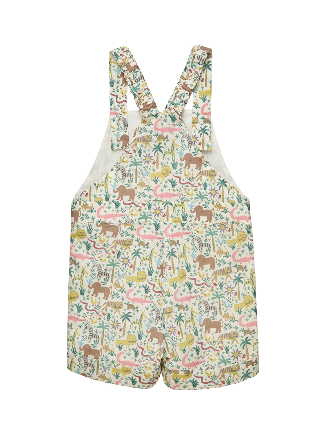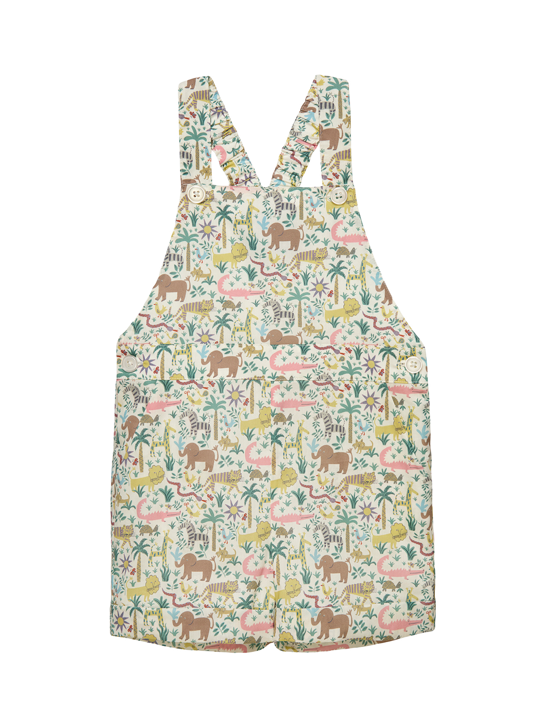 The Atticus bib shorts feature an elasticated waist, button fastening and sweet turn-ups, for a comfortable fit. Made in Liberty's Louie's Jungle print fabric; a charming conversational print about Louie the dog, who dreams of being transported to the jungle and the animals he encounters; they make a quick and easy outfit for baby boys. Fully lined.