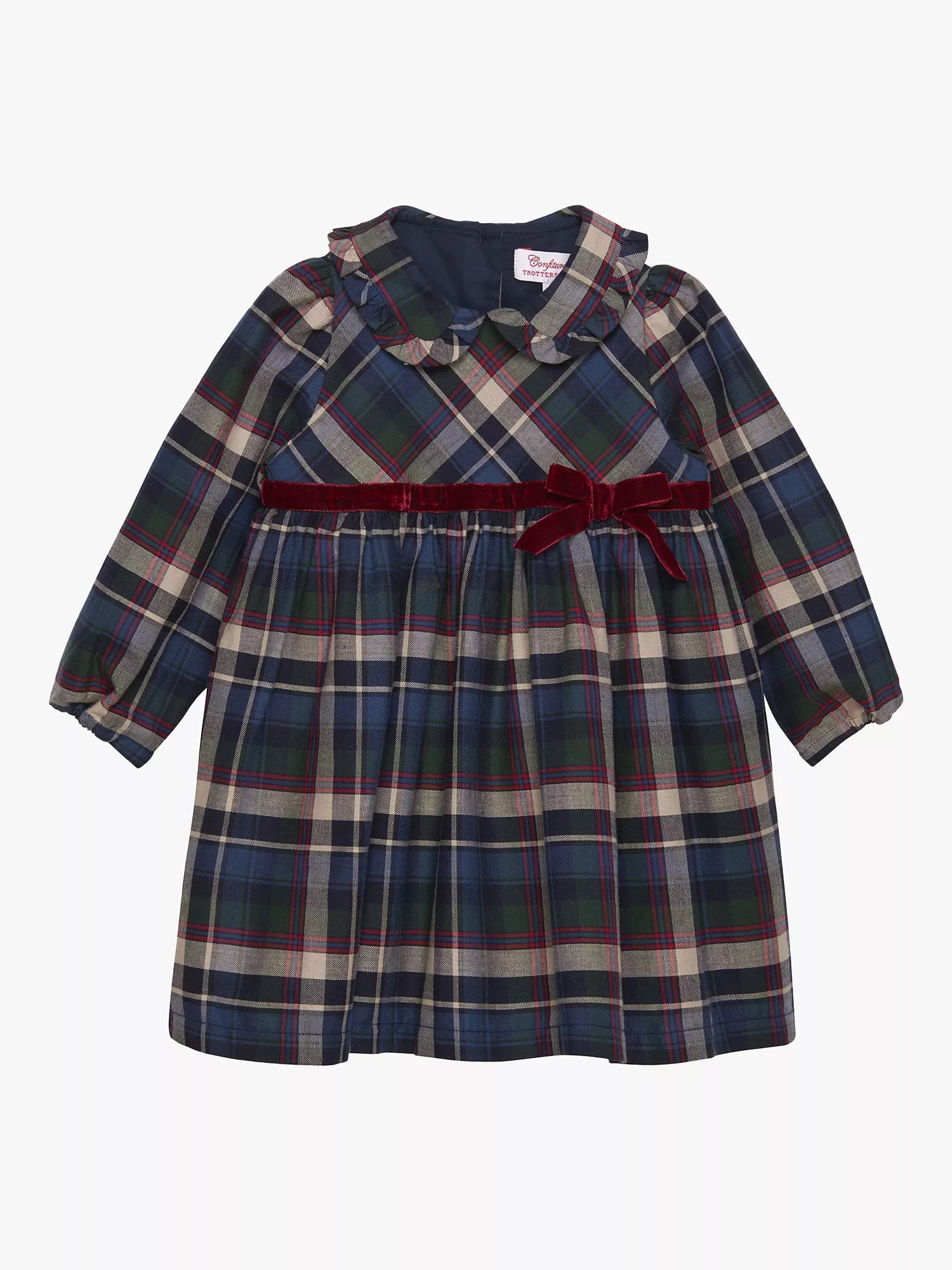 Made from 100% cotton, this beautiful long-sleeved dress is made in a festive tartan print fabric and features a statement-matching pie crust collar. Fully lined and topped off with a complementary velvet bow, it's the perfect addition to your wardrobe this party season.