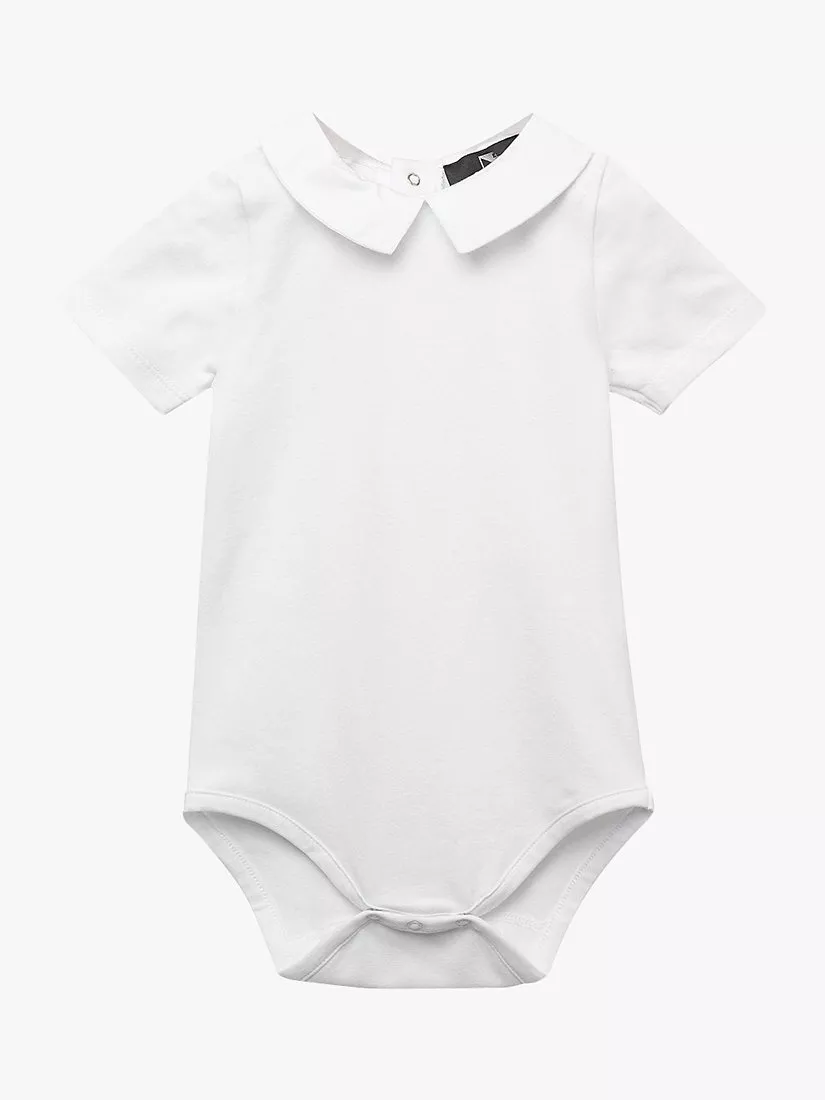 Made from lovely soft jersey. This classic body features with a smart woven Eton collar, finished with popper fastenings at the leg and centre back for easy dressing. Team this staple with dungarees or bib shorts to complete the look.