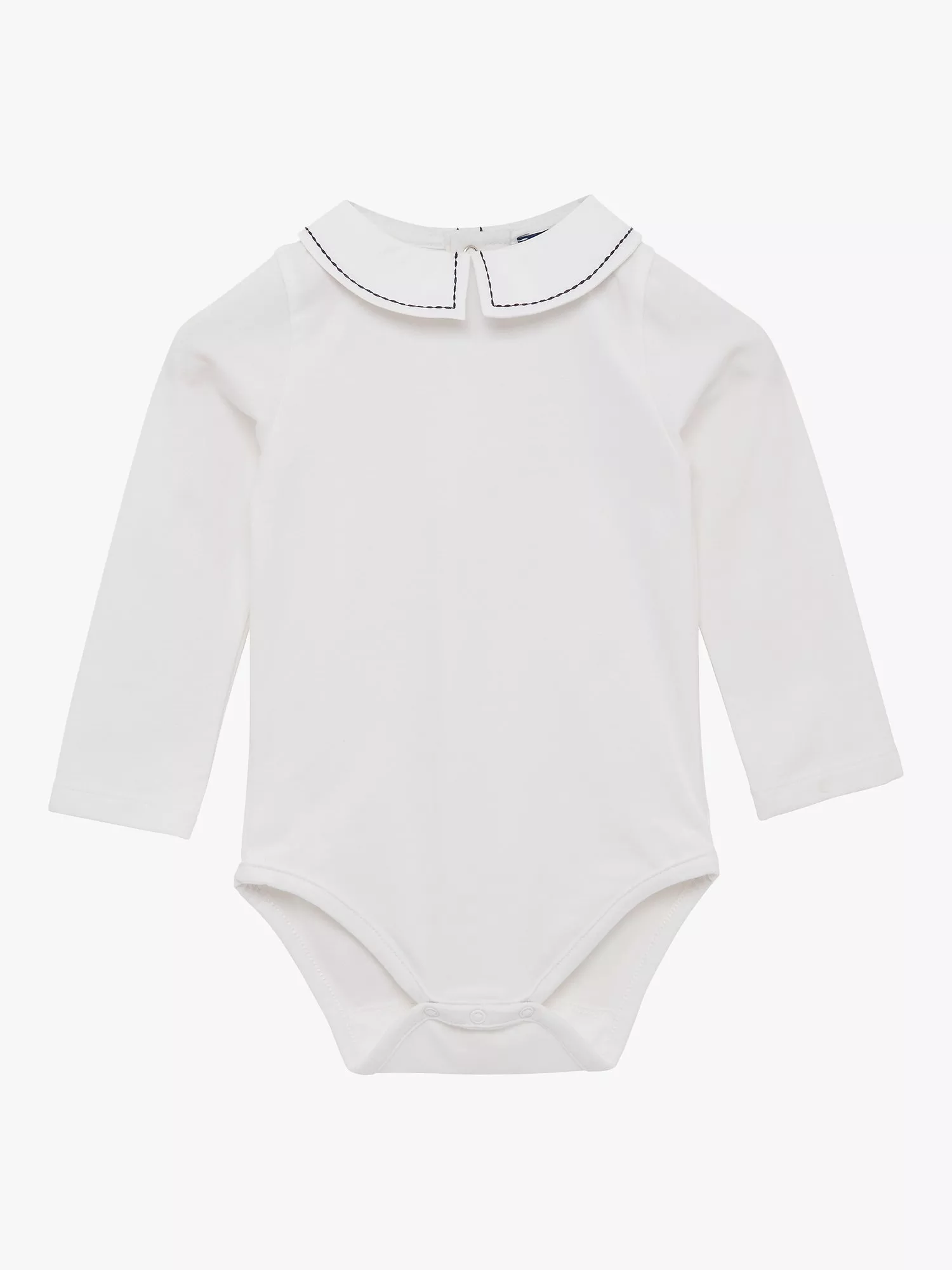 Made from a lovely soft cotton jersey, this classic body has a smart, pure cotton Eton collar with the addition of smart navy stitching around the edge. It also features warm, long sleeves and popper fastenings at the centre back and the leg seams for easy dressing and changing.