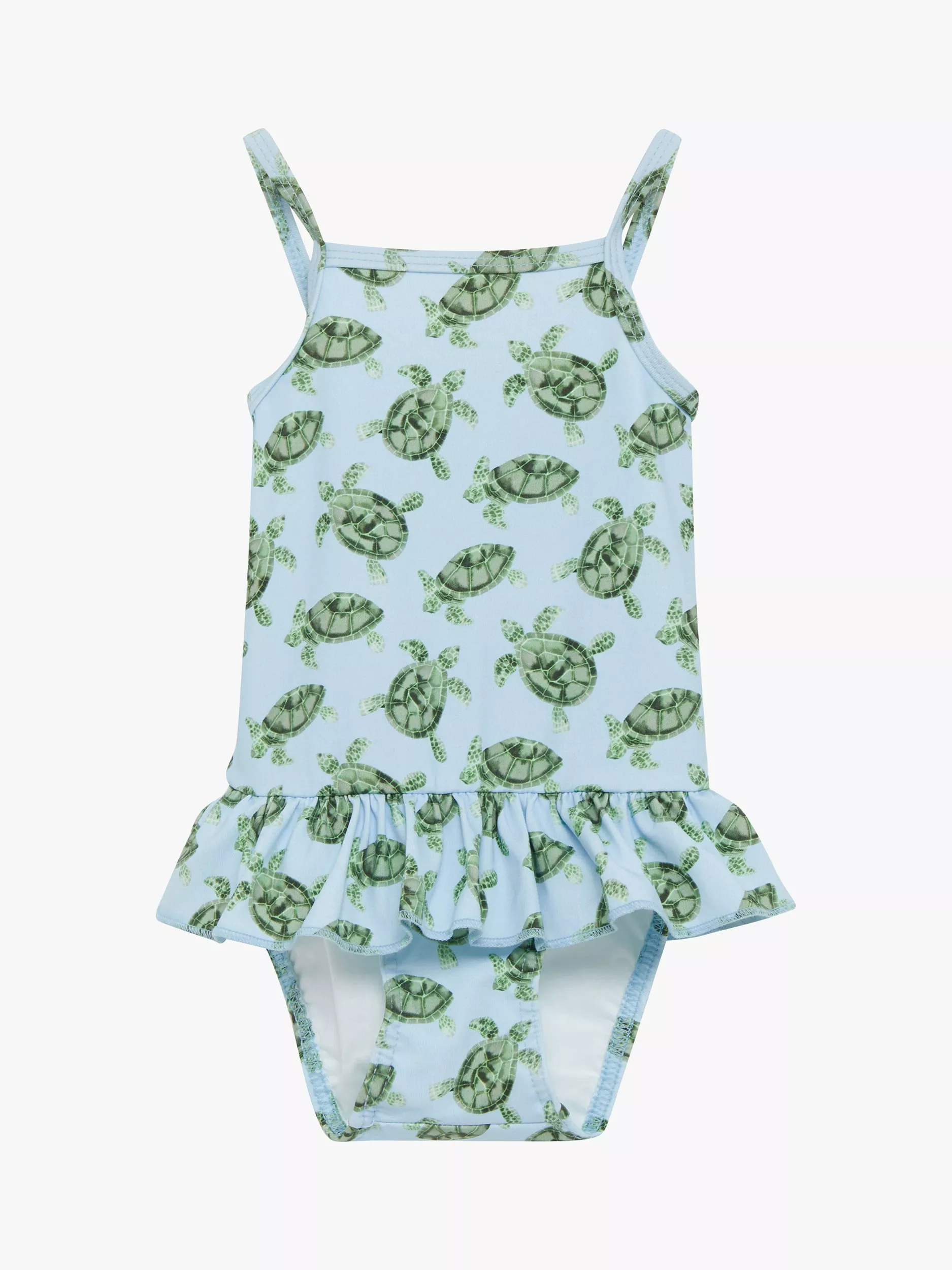 Styled in a classic cut with peplum frill detailing around the waist and an all-over turtle print, this baby's swimsuit is ideal for splashing about on hot summer days.