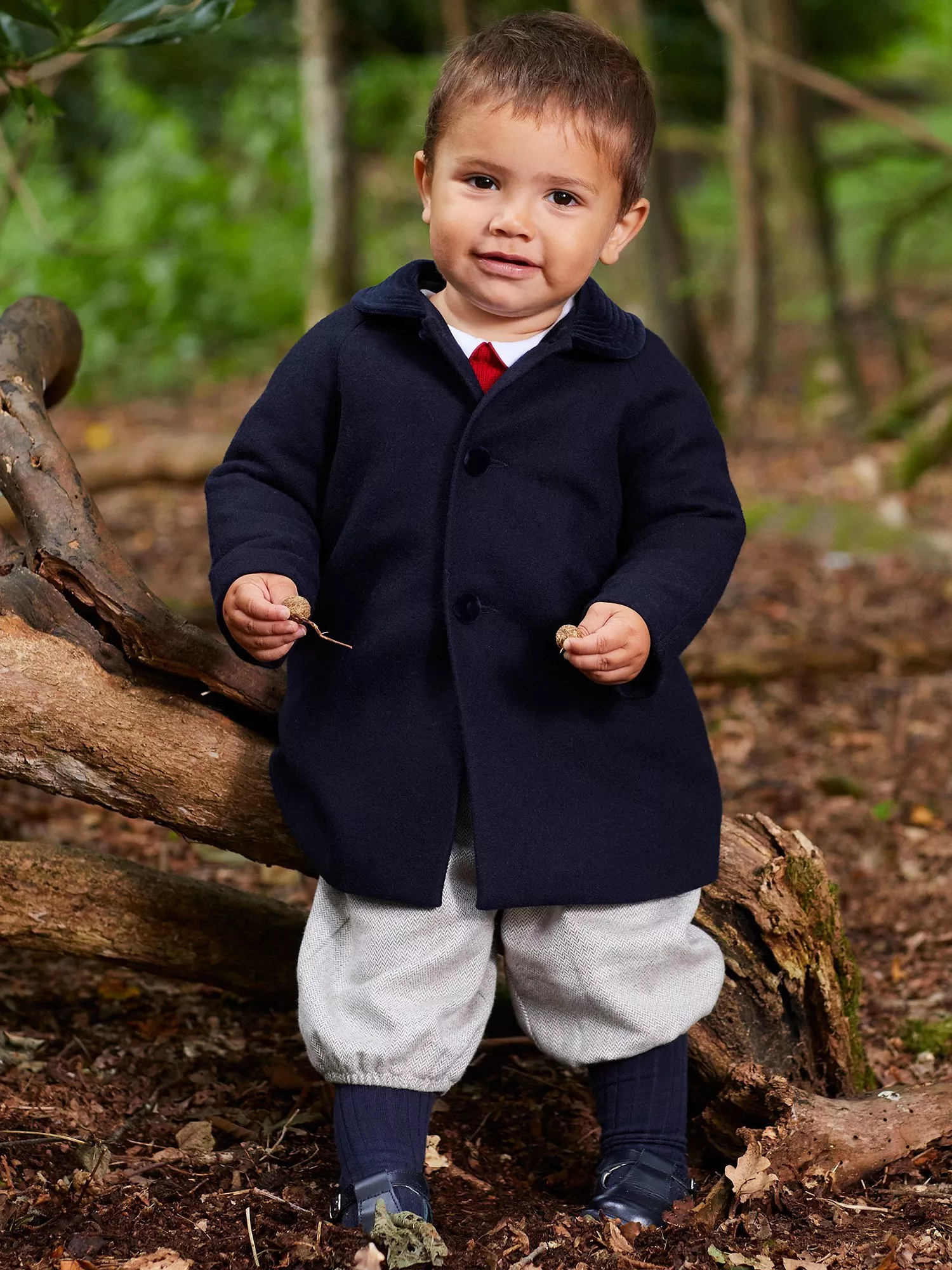 Trotters Heritage's beautifully smart woollen Classic Coat is a must have to get you through the colder months. Made from 100% wool, this knee-length coat also features a velvet collar and velvet covered buttons. This Trotters favourite will become a staple of your child's winter wardrobe.