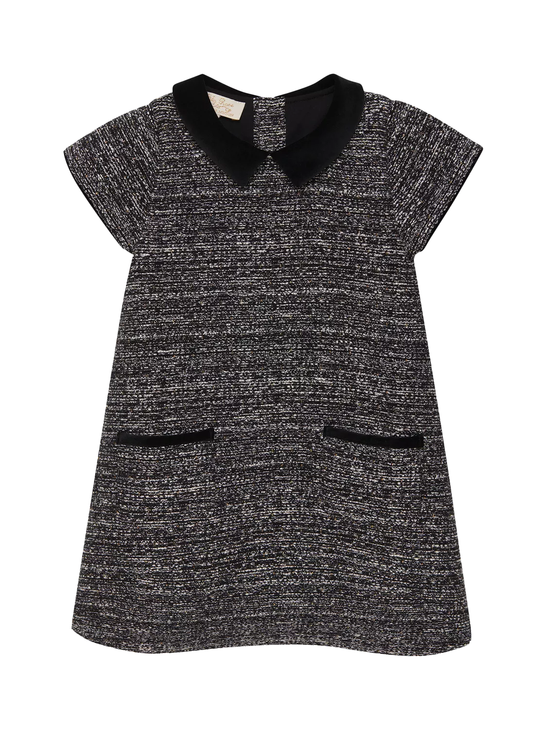 The Aurelia dress features a classic A-line shape and comes in premium wool blend fabric, featuring a touch of lurex for added sparkle. The epitome of elegance and simplicity, this timeless style is complete with a black velvet Peter Pan collar and is perfect for the Christmas party season.
