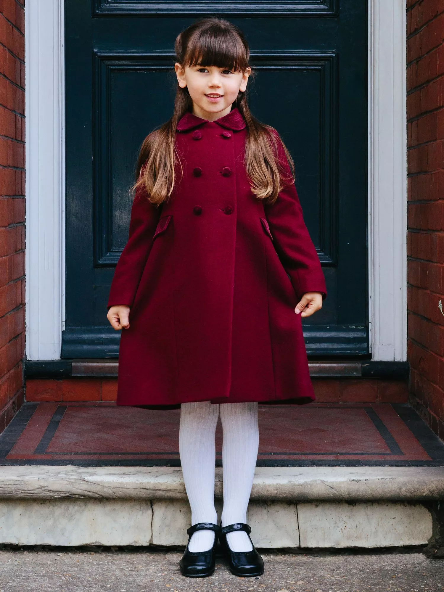 TrottersKids' Classic Double Breasted Coat, Burgundy