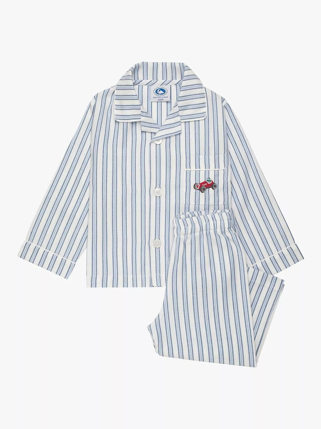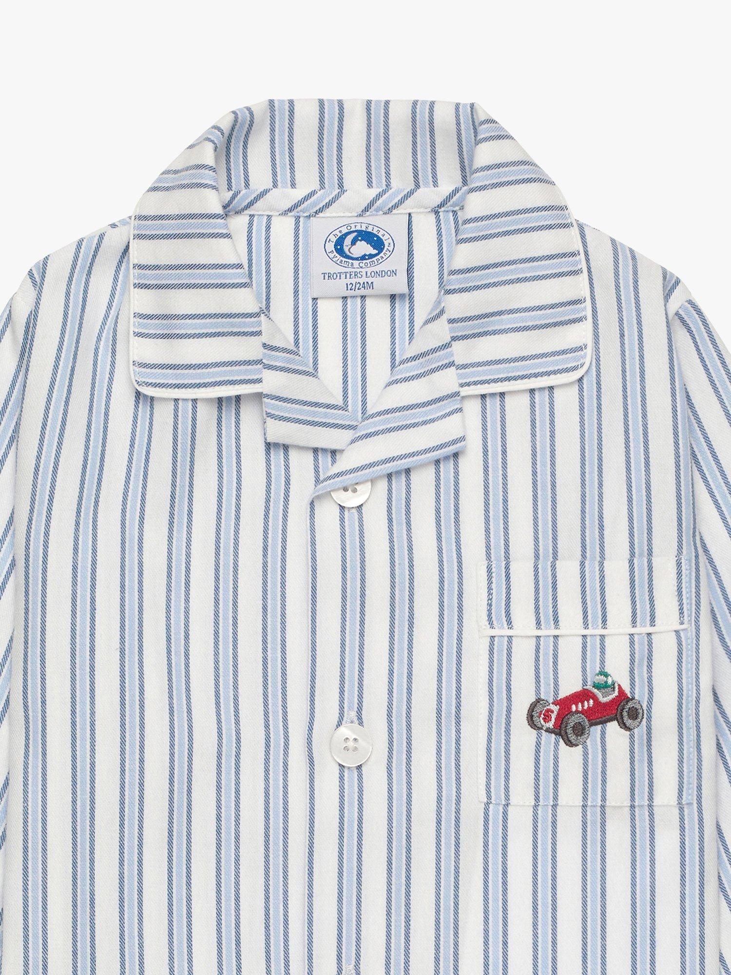 Crafted from cool cotton in a classic striped yarn fabric, these comfortable pyjamas showcase an embroidered vintage race car on the chest pocket and smart pearlised button fastenings.