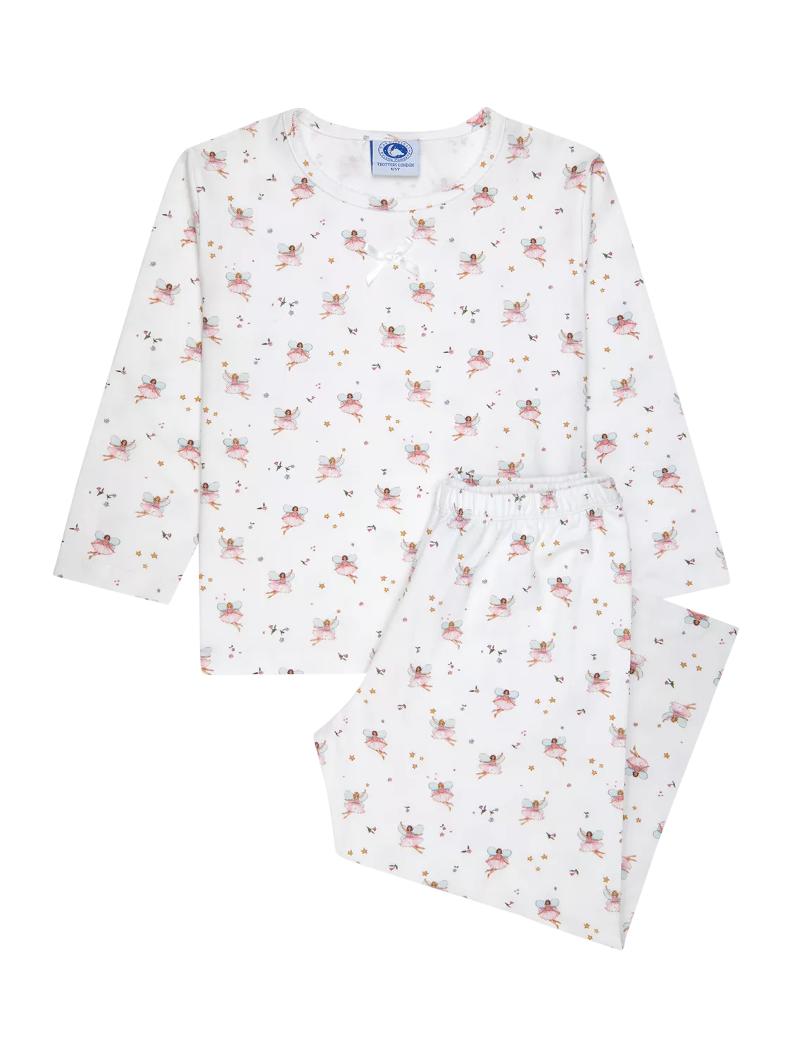 Made in a super soft cotton jersey, these pyjamas come in an exclusive all-over fairy print that was designed in-house by Trotters. The trousers have a fully elasticated waist and are just the thing for sweet dreams and a comfortable night's sleep.