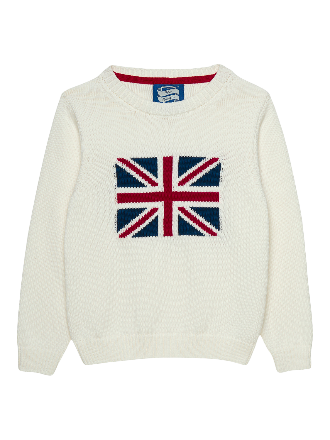 An update on a Trotters classic, the George Jumper is fit for a Prince. Great for layering on those cooler evenings, this cotton-rich jumper features the iconic Union Jack intarsia design on the front set against a light, fresh off-white colourway.