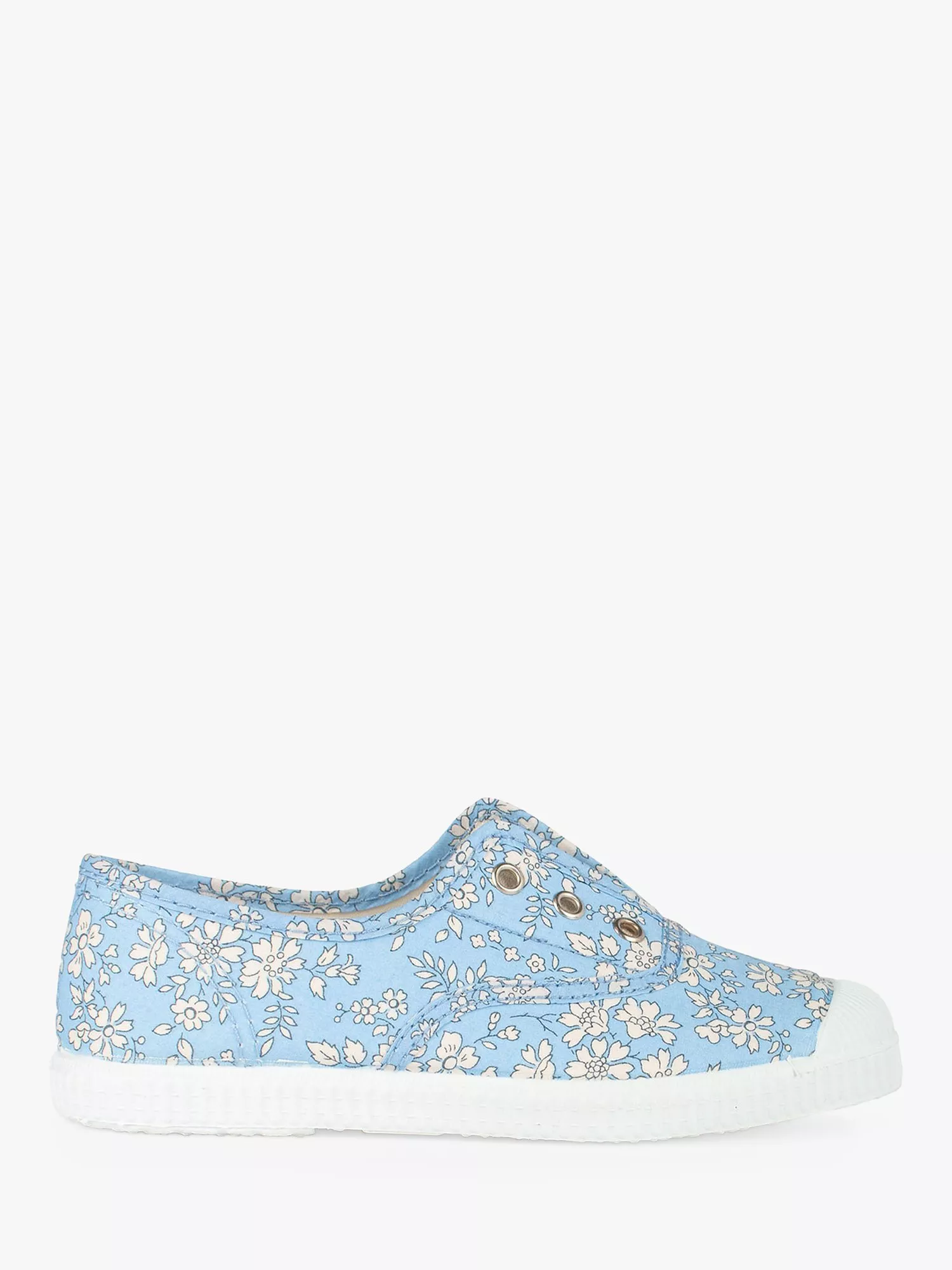 TrottersKids' Hampton Plum Betsy Print Canvas Plimsolls, Blue Capel, 7 Jnr