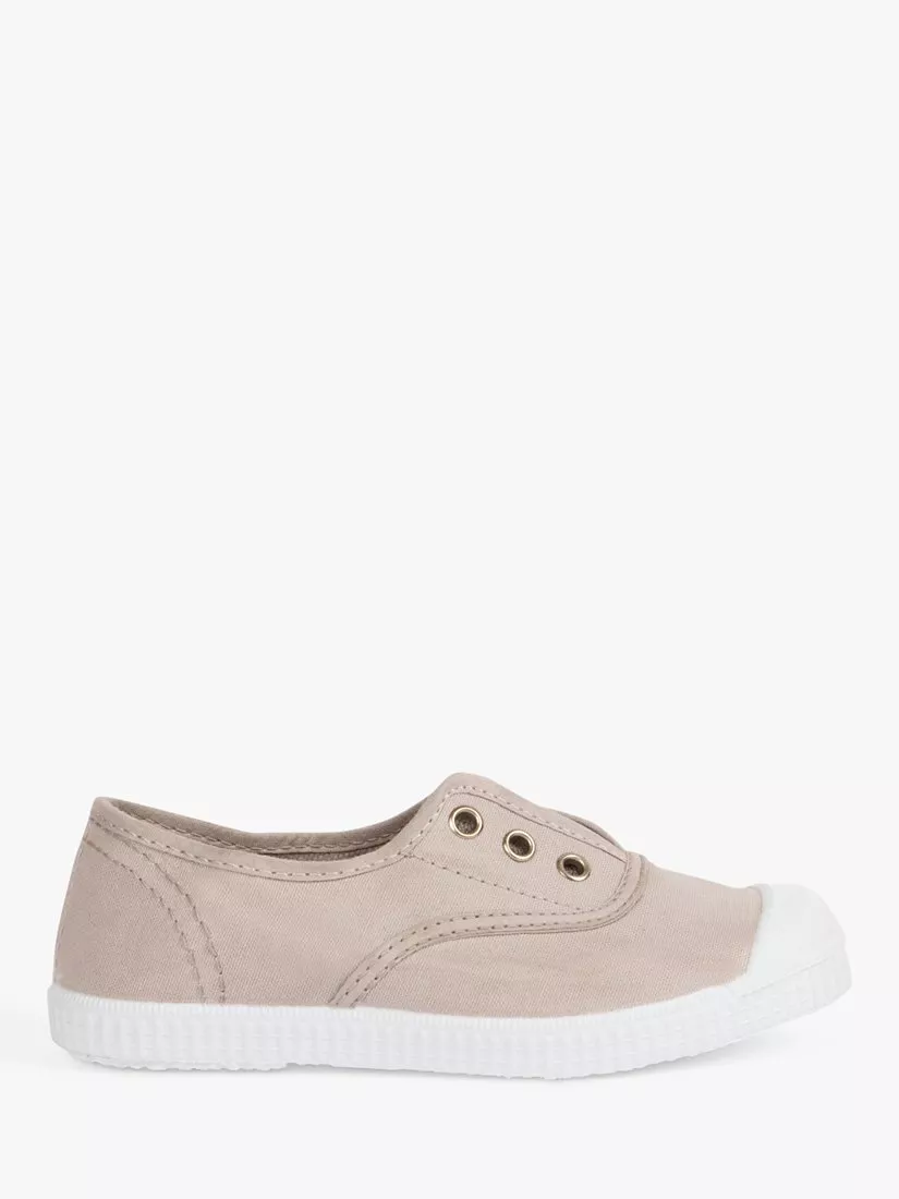 Evoke the feelings of summer holidays. Designed in England and handmade in a family-run factory in Spain, the 100% organic cotton canvas and 100% natural rubber sole ensures comfort. The plimsolls are also machine washable and elasticated for easy wear.
