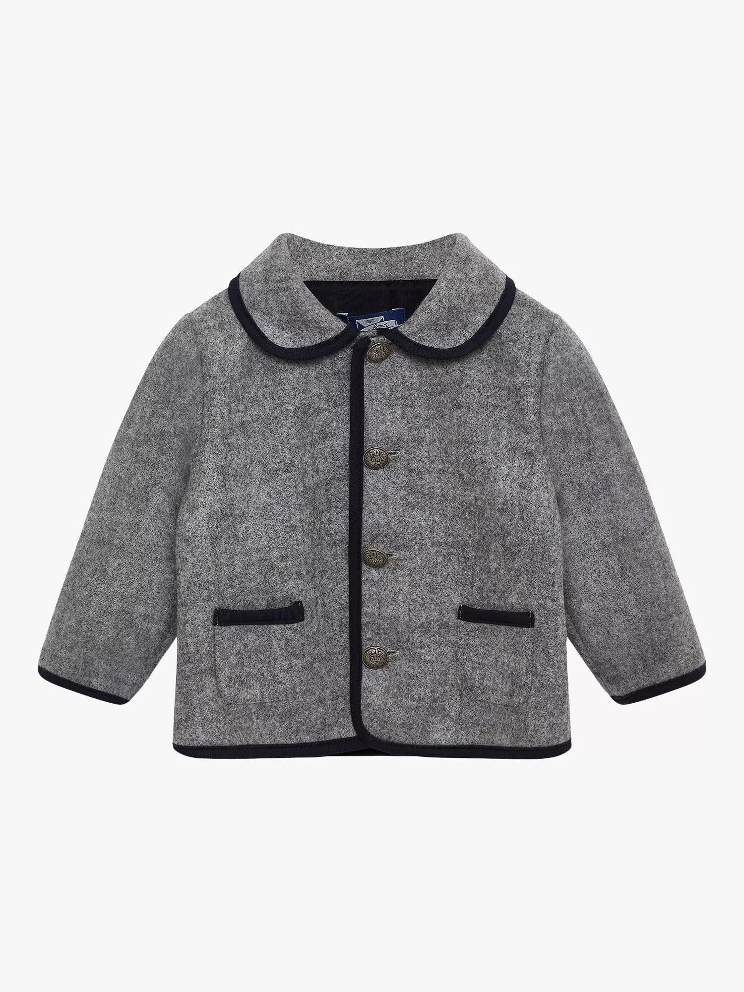 This smart jacket for little ones comes in a classic colourway and features distressed metal button fastenings and contrast piping. Complete with two patch pockets and fully lined, this jacket makes a stylish way to cover up this autumn/winter.