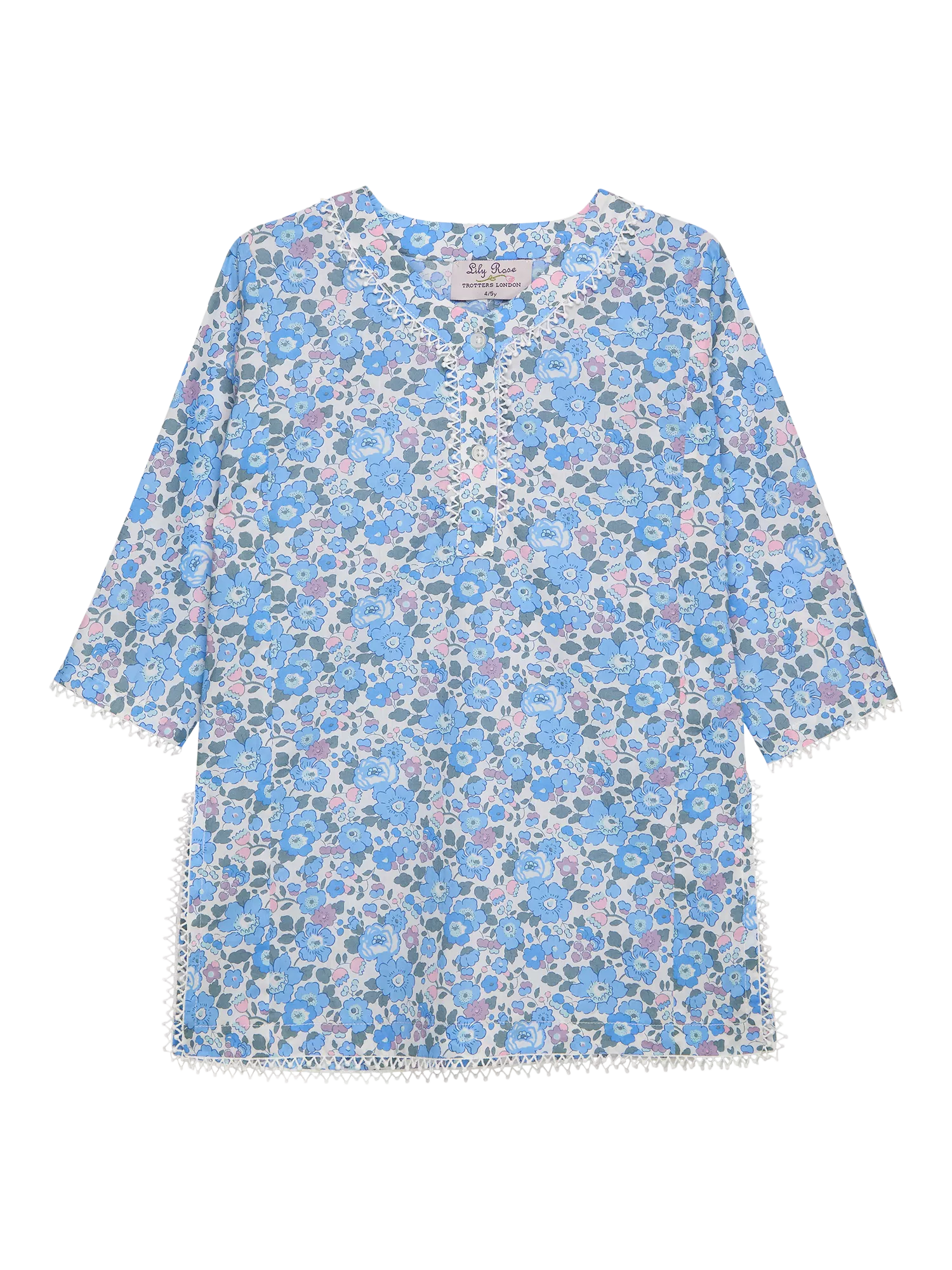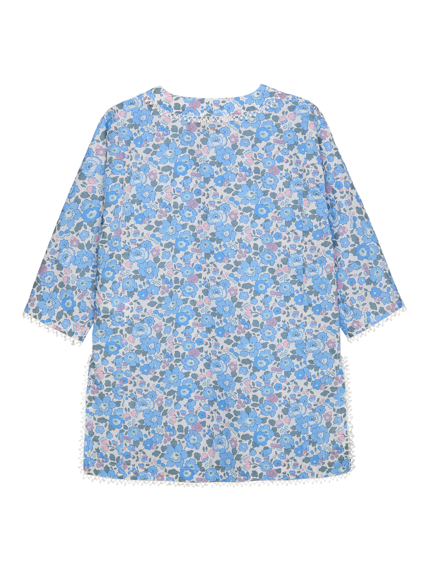 This beautiful kaftan is made in Liberty's Betsy print fabric - one of their most iconic prints, known for its stylised small floral design. Featuring fun bobble trim detail, they'll want to wear it all day, not just to the pool or the beach.