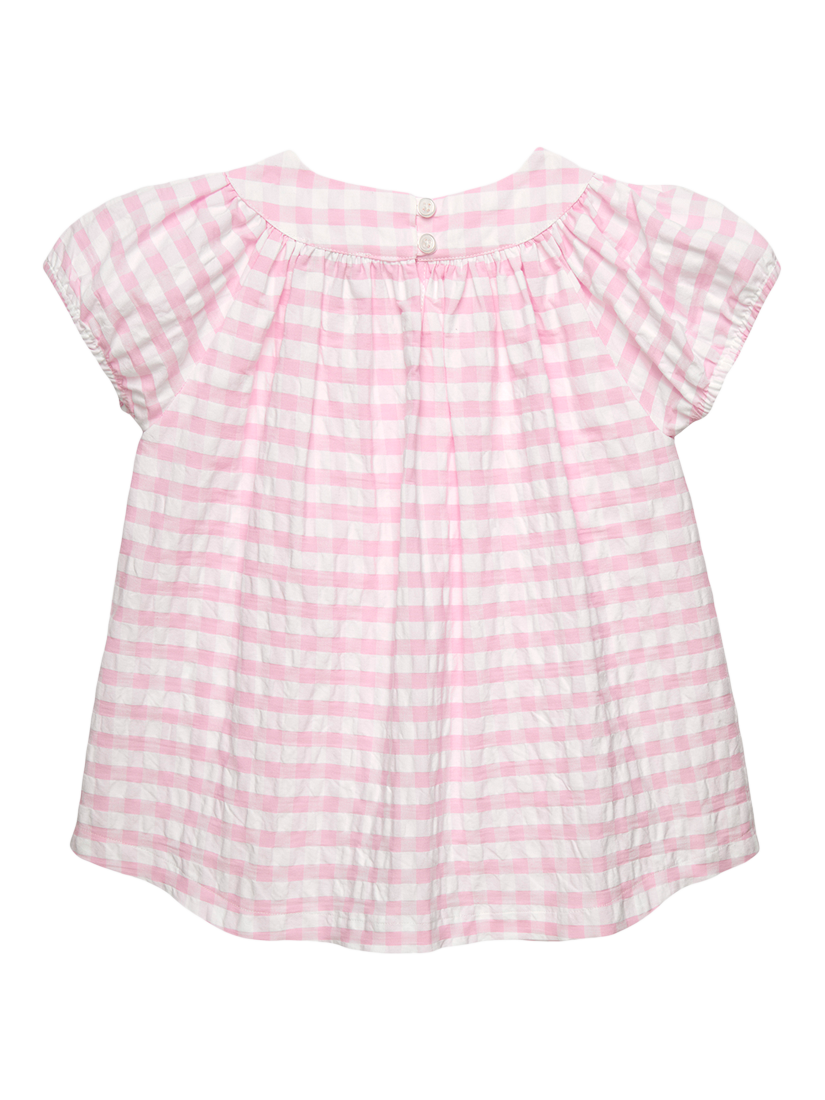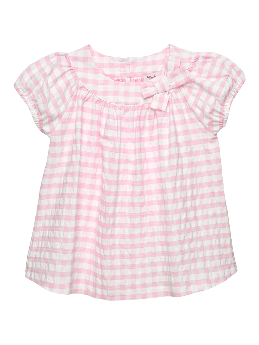 Decorated in a sweet gingham pattern, this pretty top features puff sleeves and a classic round neckline, complete with matching self-fabric bow.