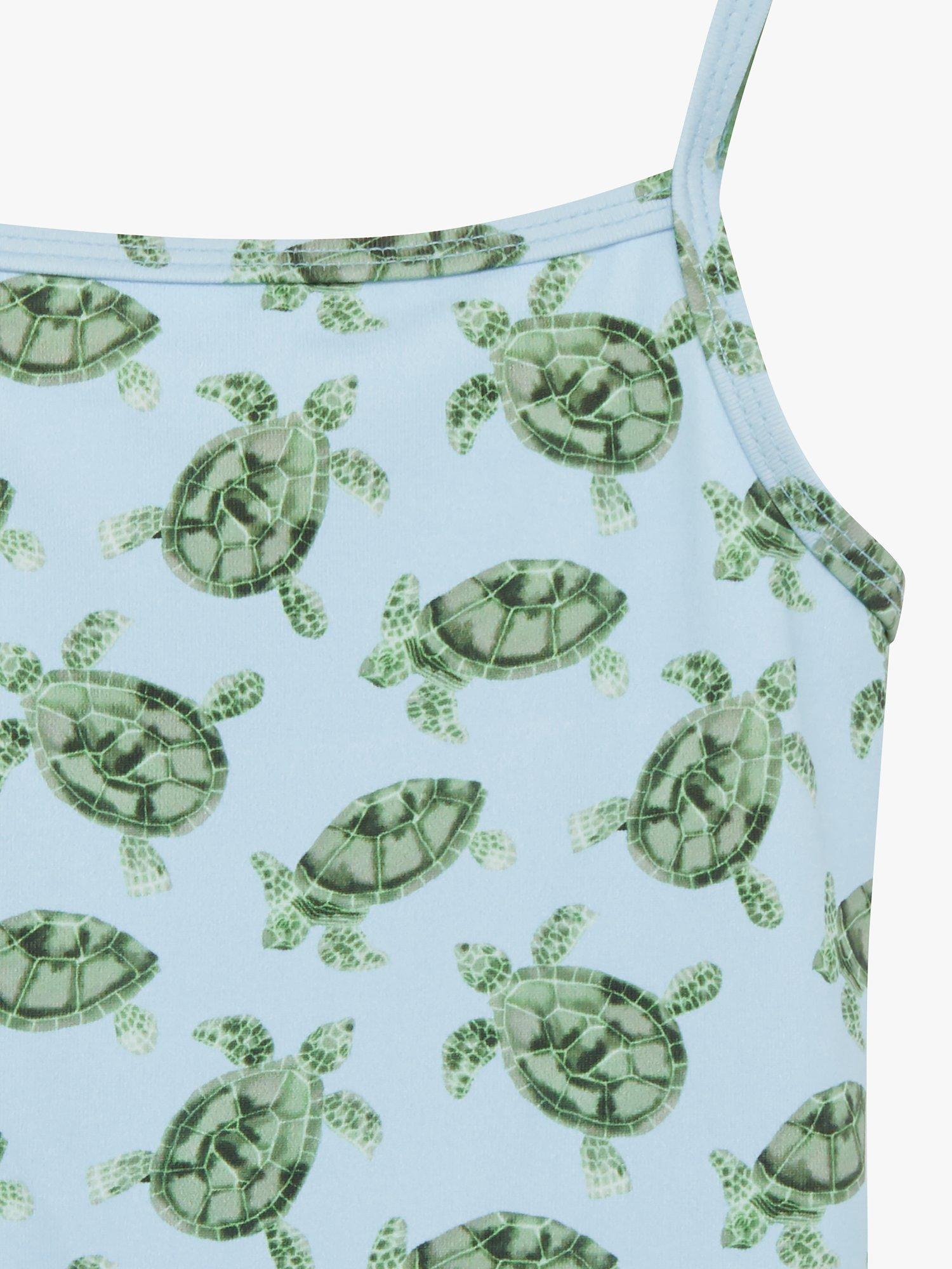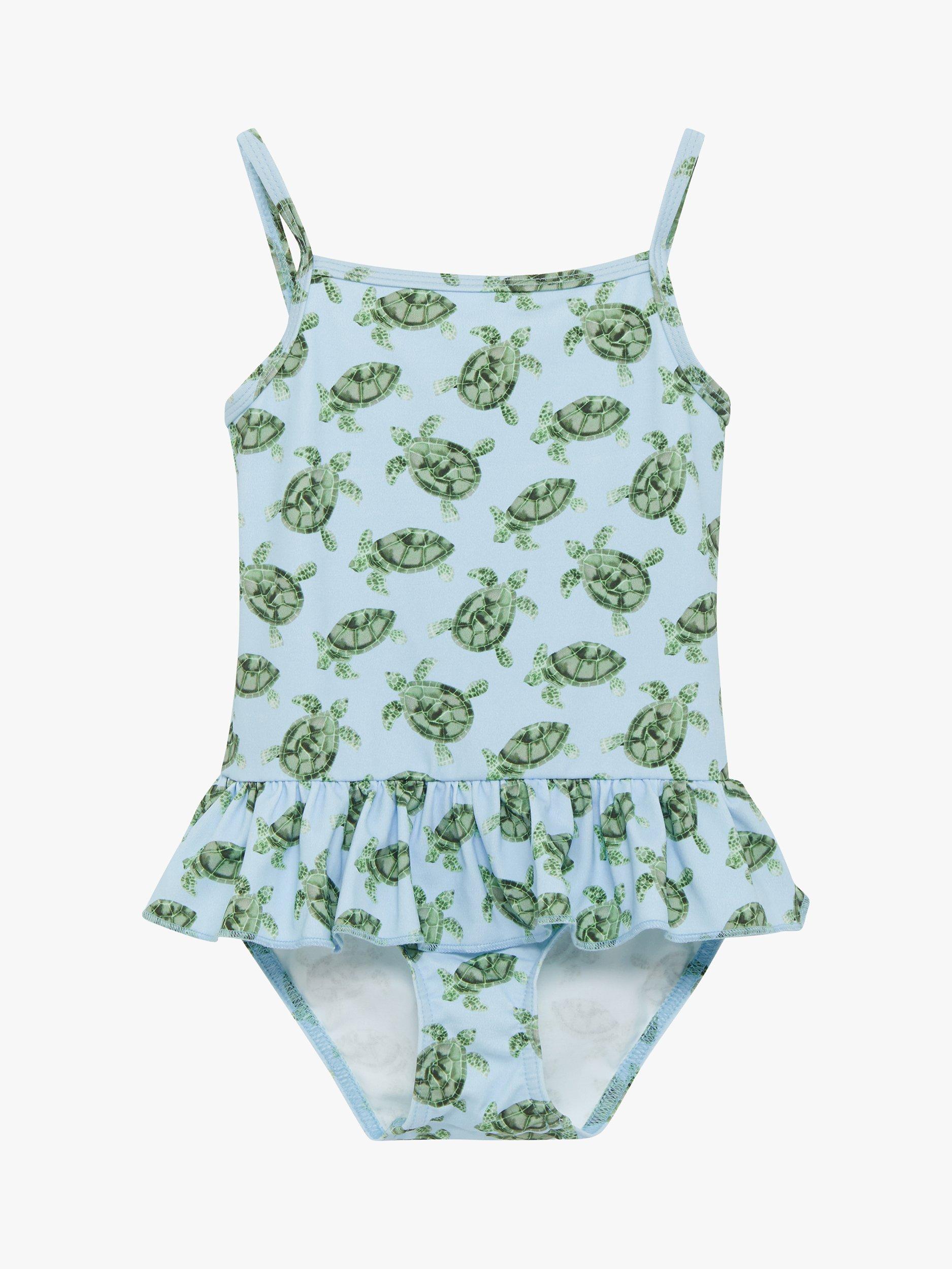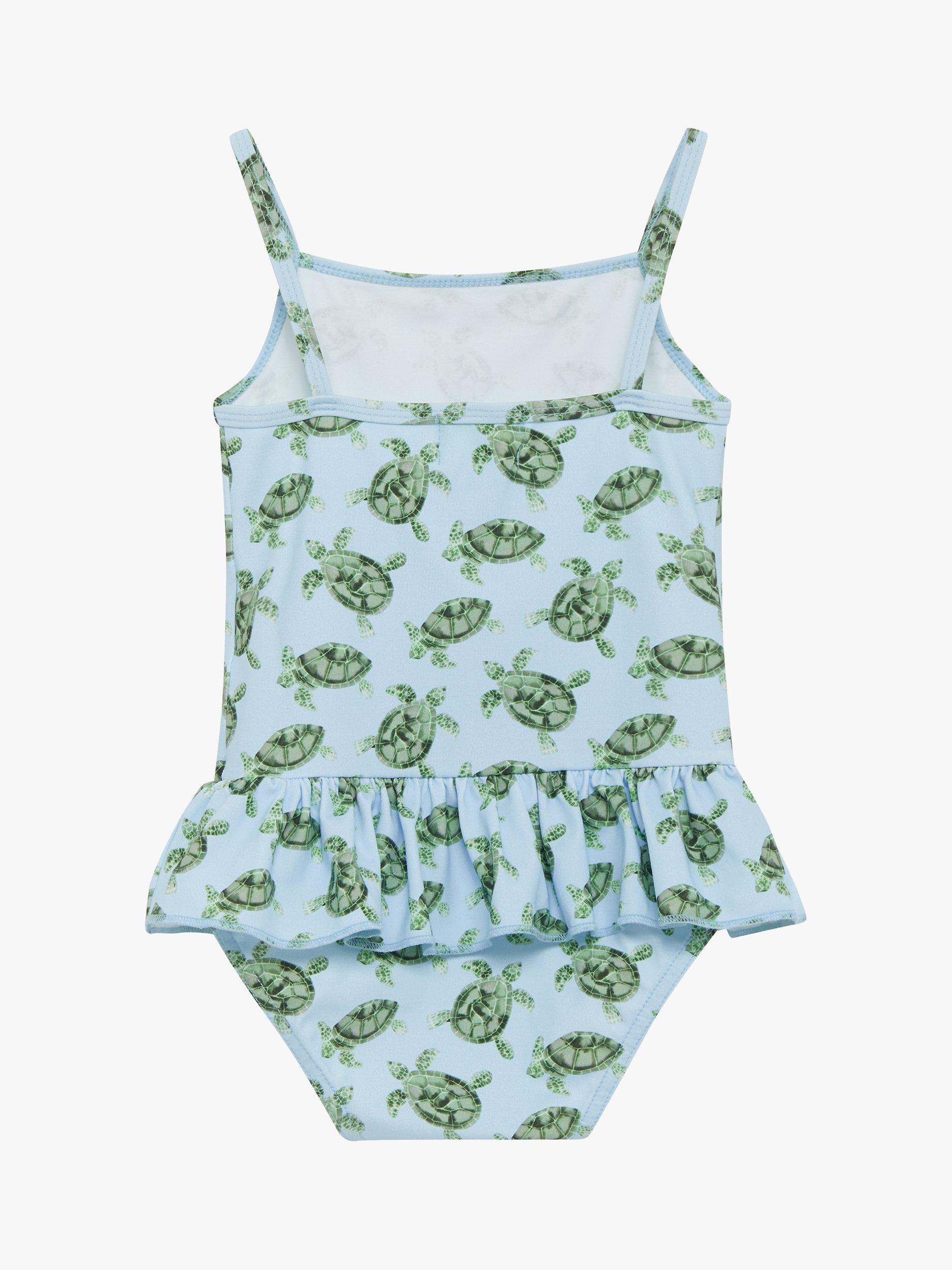 Styled in a classic cut with peplum frill detailing around the waist and an all-over turtle print, this kids' swimsuit is ideal for splashing about on hot summer days.