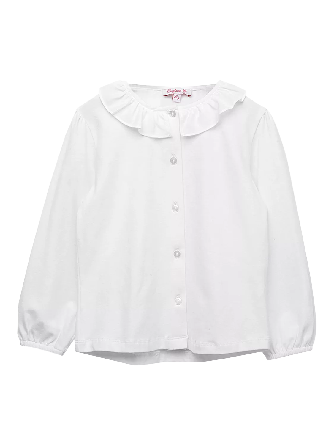 A simple and elegant jersey top with full-length button-down fastening and a pretty frilled collar. It also features elasticated cuffs to help keep those sleeves in place.